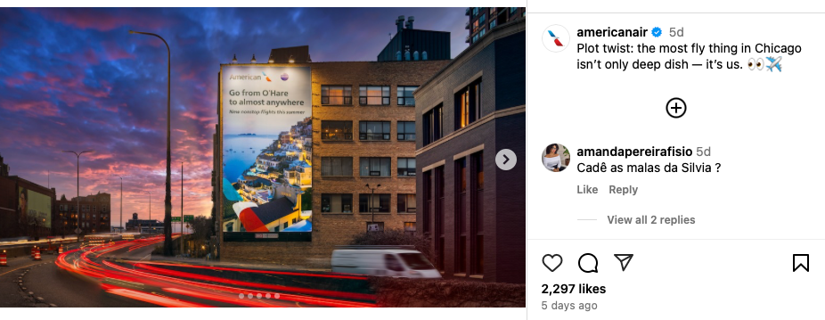 Aside from rejecting the reallocation of gates, American is also taking a stab back at United — but without calling the carrier out by name. In a recent Instagram post of its own, the airline is touting why travelers should choose it from Chicago.