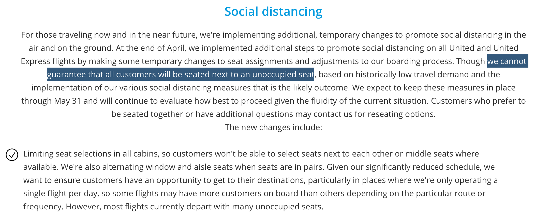 United clarifies what it actually means to 'block middle seats'