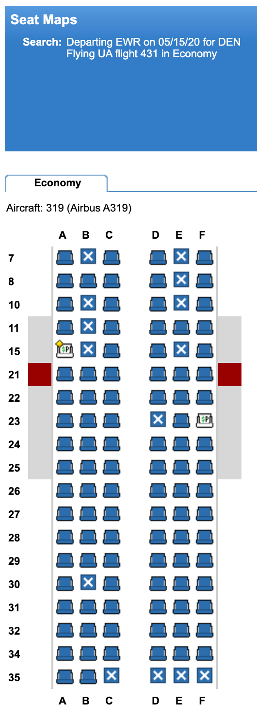 For example, on any given Friday, the airline typically operates up to 17 flights from the New York City area to its hub in Denver (DEN), flying from both LaGuardia Airport (LGA) and Newark (EWR). This Friday, however, the airline is only flying two planes from NYC to Denver; while the original schedule would have enabled onboard distancing, that simply isn't possible with just two Airbus A319s available to fly passengers.