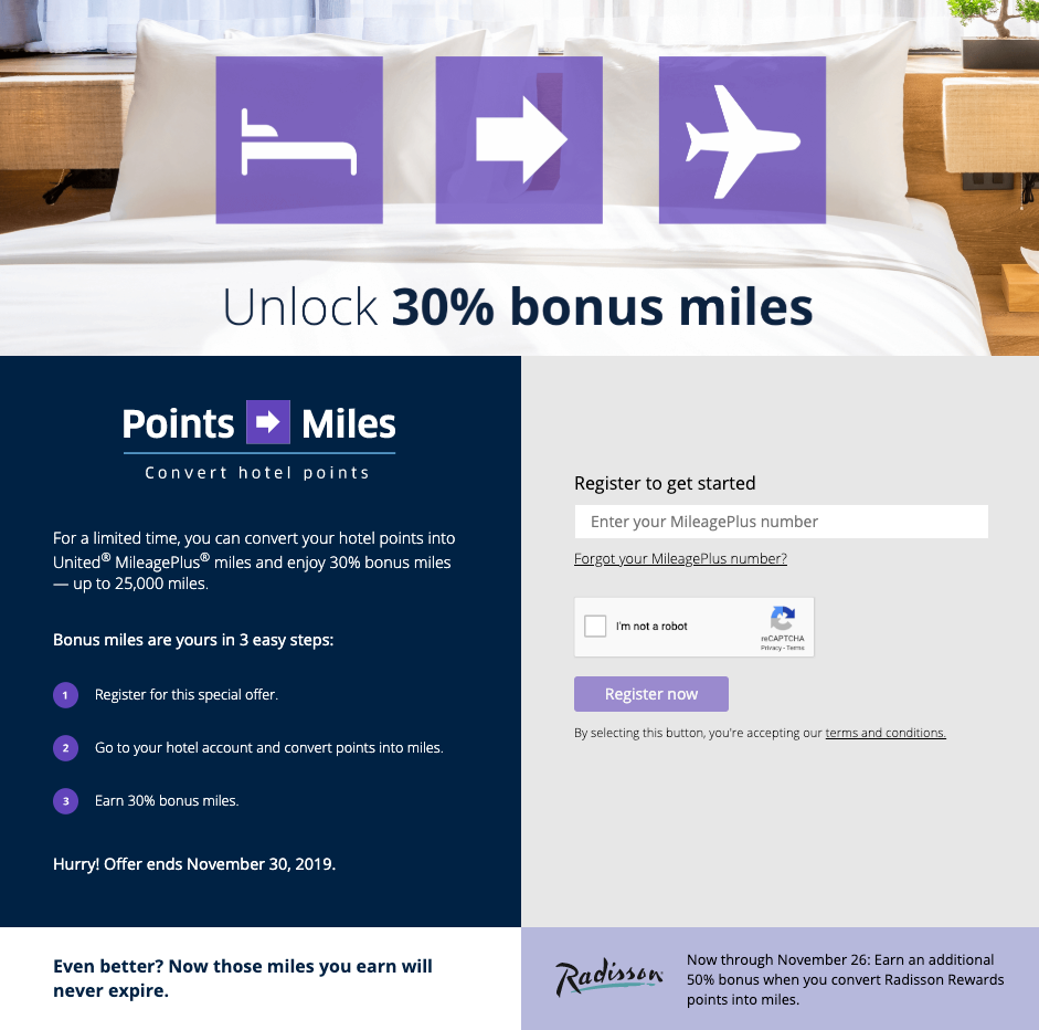 Before you start transferring, you'll have to register for the promotion. After you enroll, be sure to initiate the transfer before the promotion ends on Nov. 30, 2019. This promo offers members the ability to earn up to 25,000 bonus United miles from the transfer.