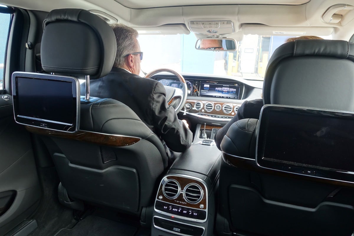 While they might only be in the car for a minute or two (as I was when I got to try out United's new VIP services last weekend), they'll certainly be riding in comfort. Since I was flying in from Newark (on a paid economy ticket upgraded to business with an RPU), a Global Services representative was waiting with my name on a sign just past the aircraft door. She led me down the jet bridge staircase to my waiting Mercedes.