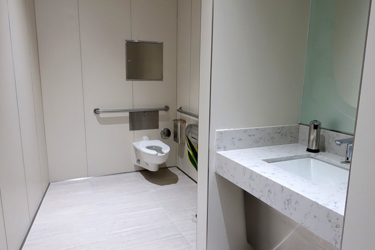 There's also a private bathroom, but just like in the main lounge, there's no shower here, unfortunately.