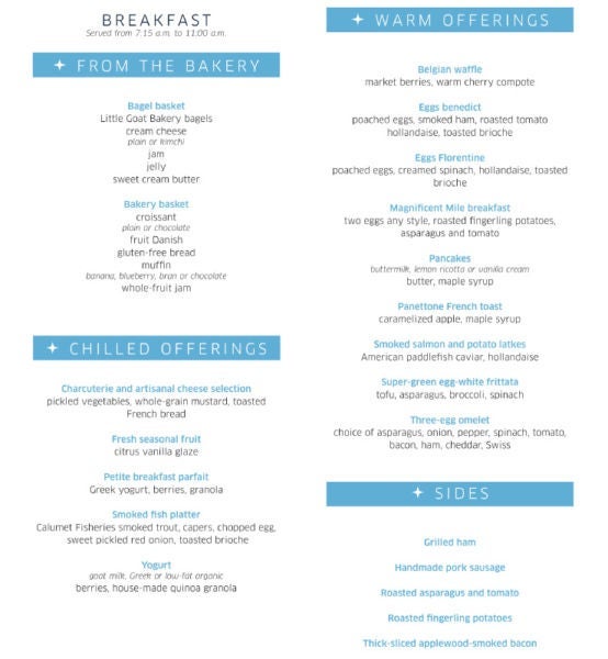 Well, United has shared some good news! Anyone visiting as of today will be able to experience this new dining option. And the airline has shared its breakfast and lunch/dinner menus (note that these menus are subject to minor adjustments — for example, you might receive a slightly different potato with your Magnificent Mile breakfast).