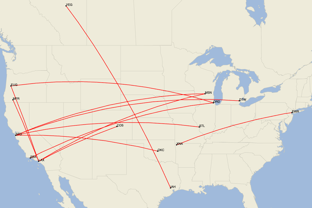 Perhaps the hardest hit are United's California hubs in Los Angeles and San Francisco. Each city is losing four routes, as you can see in the table below. Most of the L.A. routes that are getting cut are to smaller cities, while some of the routes from the San Francisco International Airport (SFO) are to larger domestic cities, such as Detroit and St. Louis.