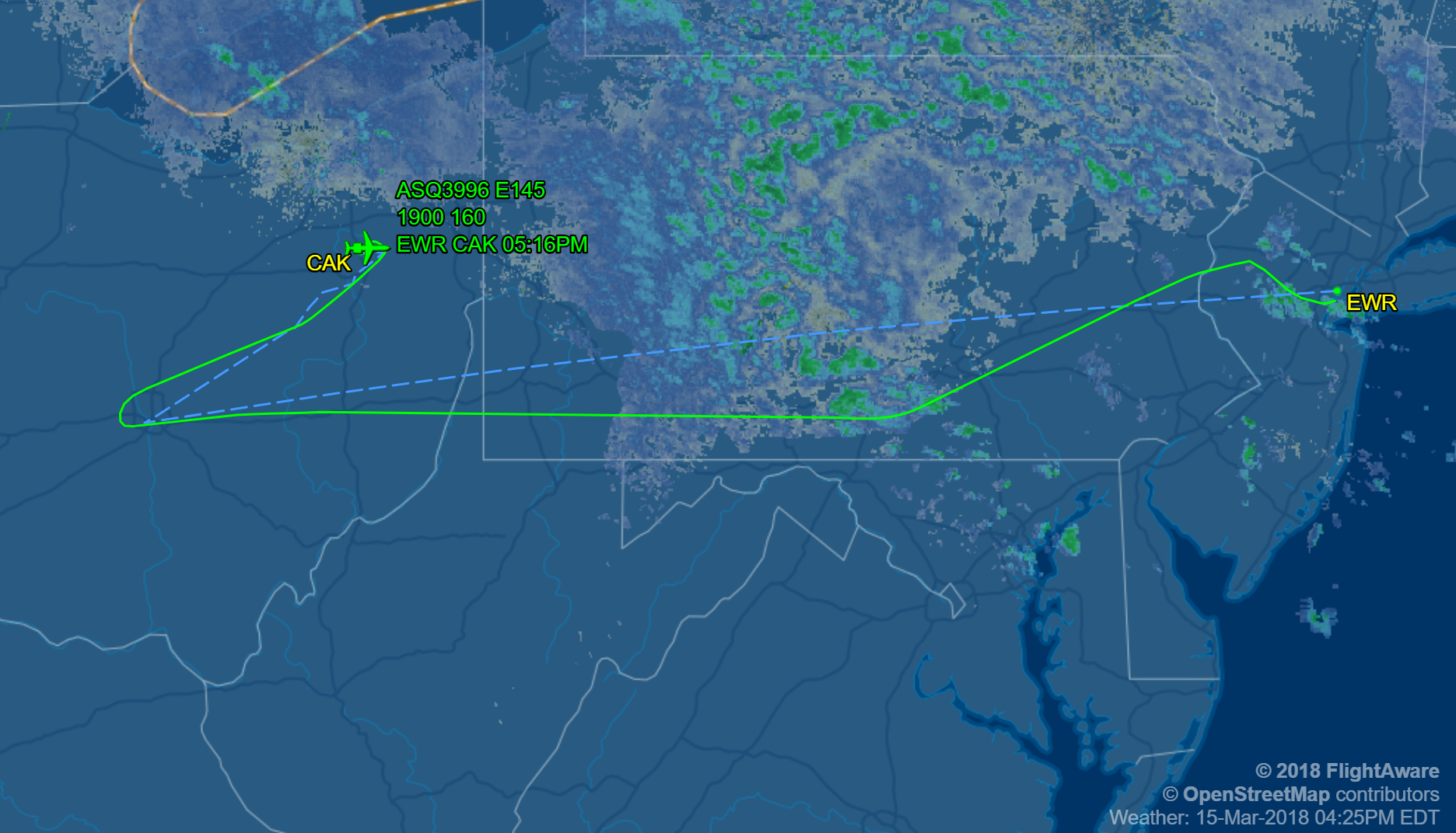 After dropping off the pet, the 50-seat Embraer ERJ-145XR (registration N17159) continued to St. Louis (STL). The flight was originally scheduled to arrive at 4:45pm, and ended up landing at the destination airport at 6:56pm.