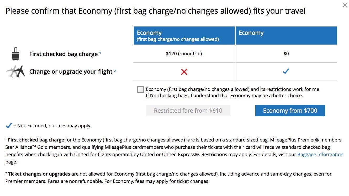 You won't be able to tell if you're looking at this new fare on Google Flights, but like domestic basic economy fares, you'll come across several warnings during the booking process on United's site that you're purchasing the restrictive fare.
