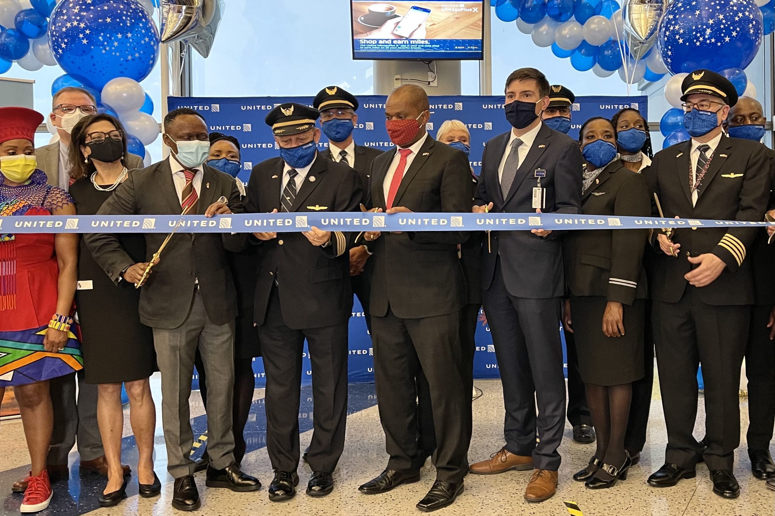 After that, United executives, pilots and representatives from South Africa participated in a ribbon cutting.