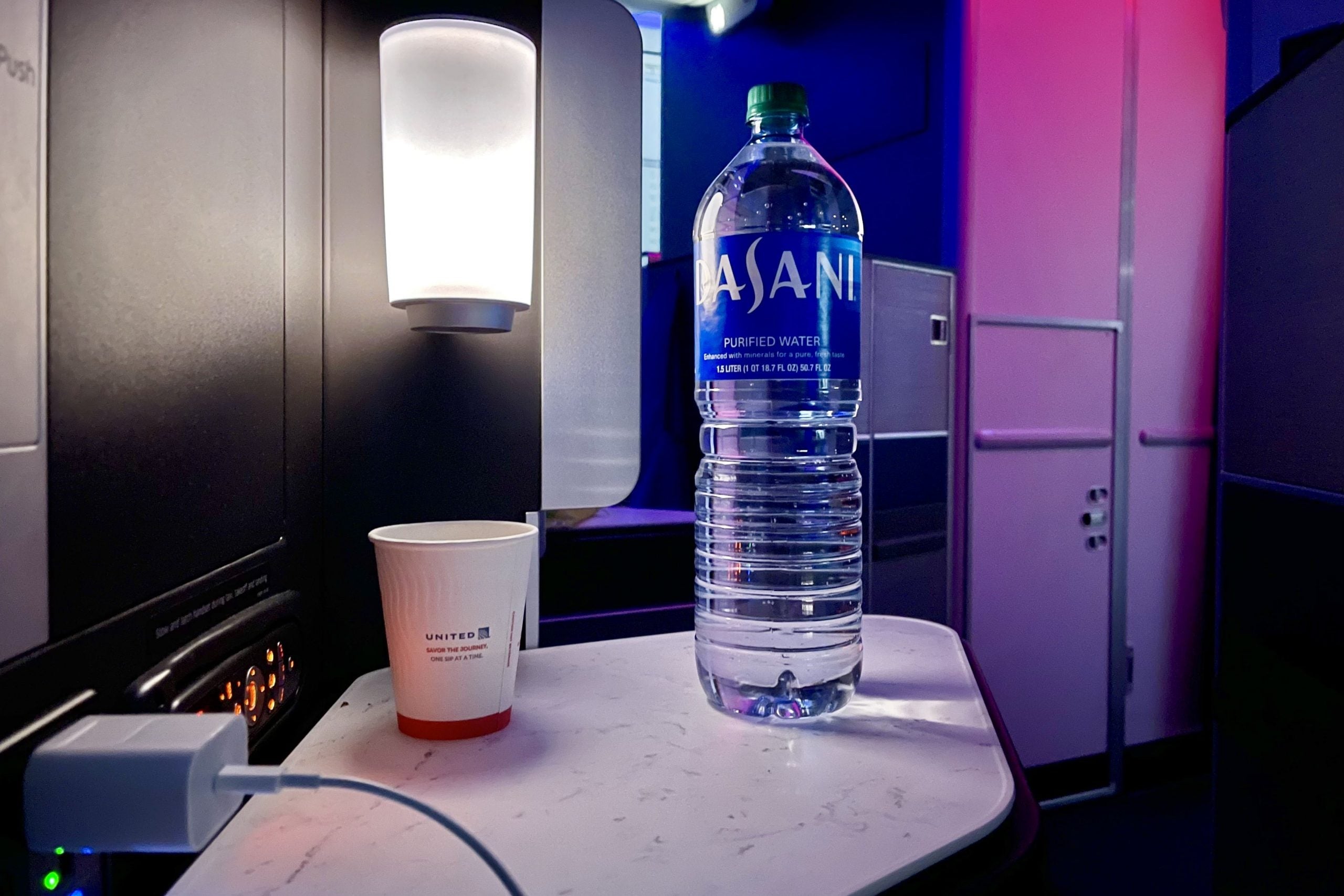 It's been a long time since I've been on a 15-hour flight. You get really thirsty! After six hours of sleep, I asked for a "giant" water bottle, and the flight attendant delivered.
