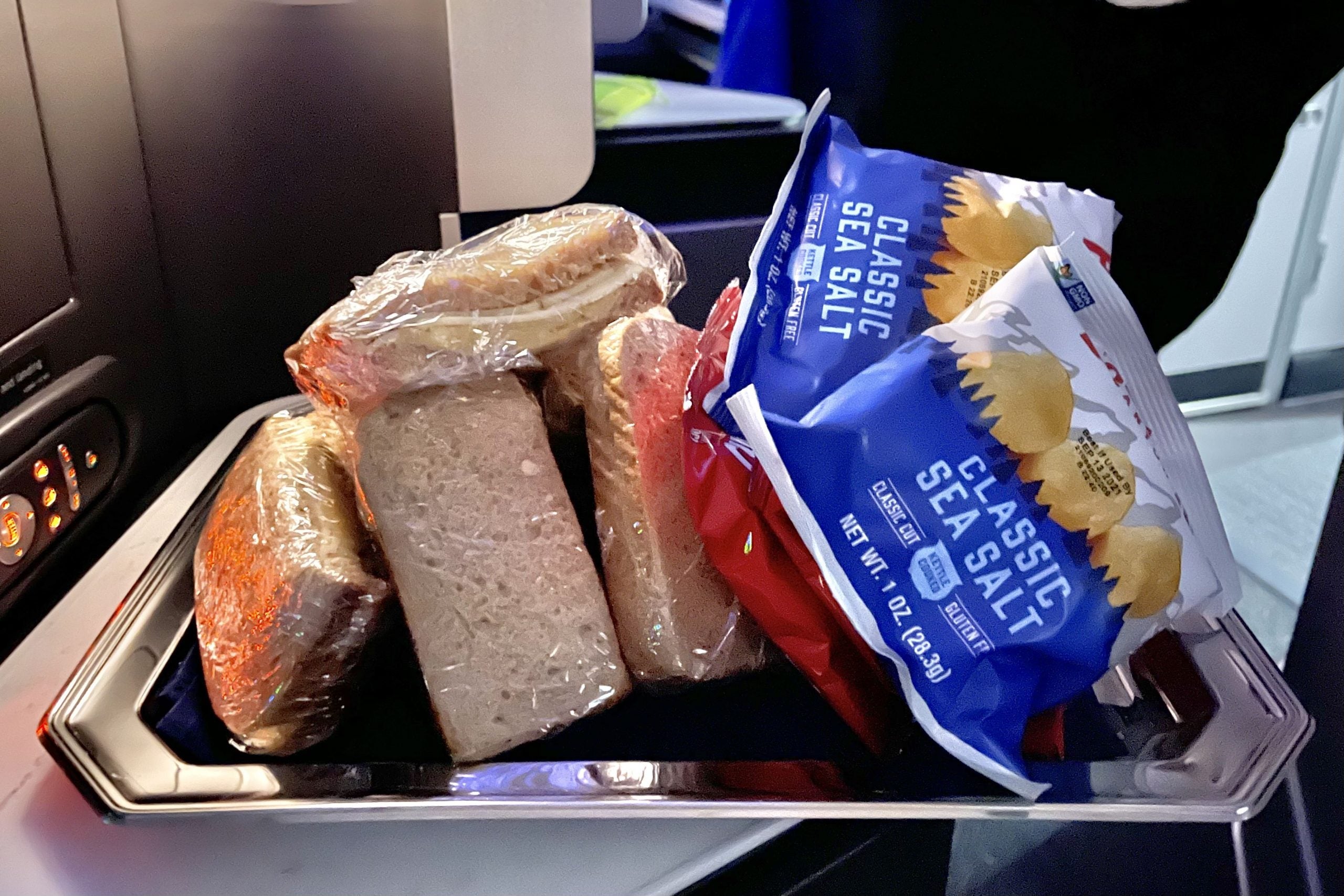 The crew came by with snacks as well, served on a literal silver platter. Before the pandemic, United offered hot snacks (like lobster mac and cheese!) on flights this long — not anymore.