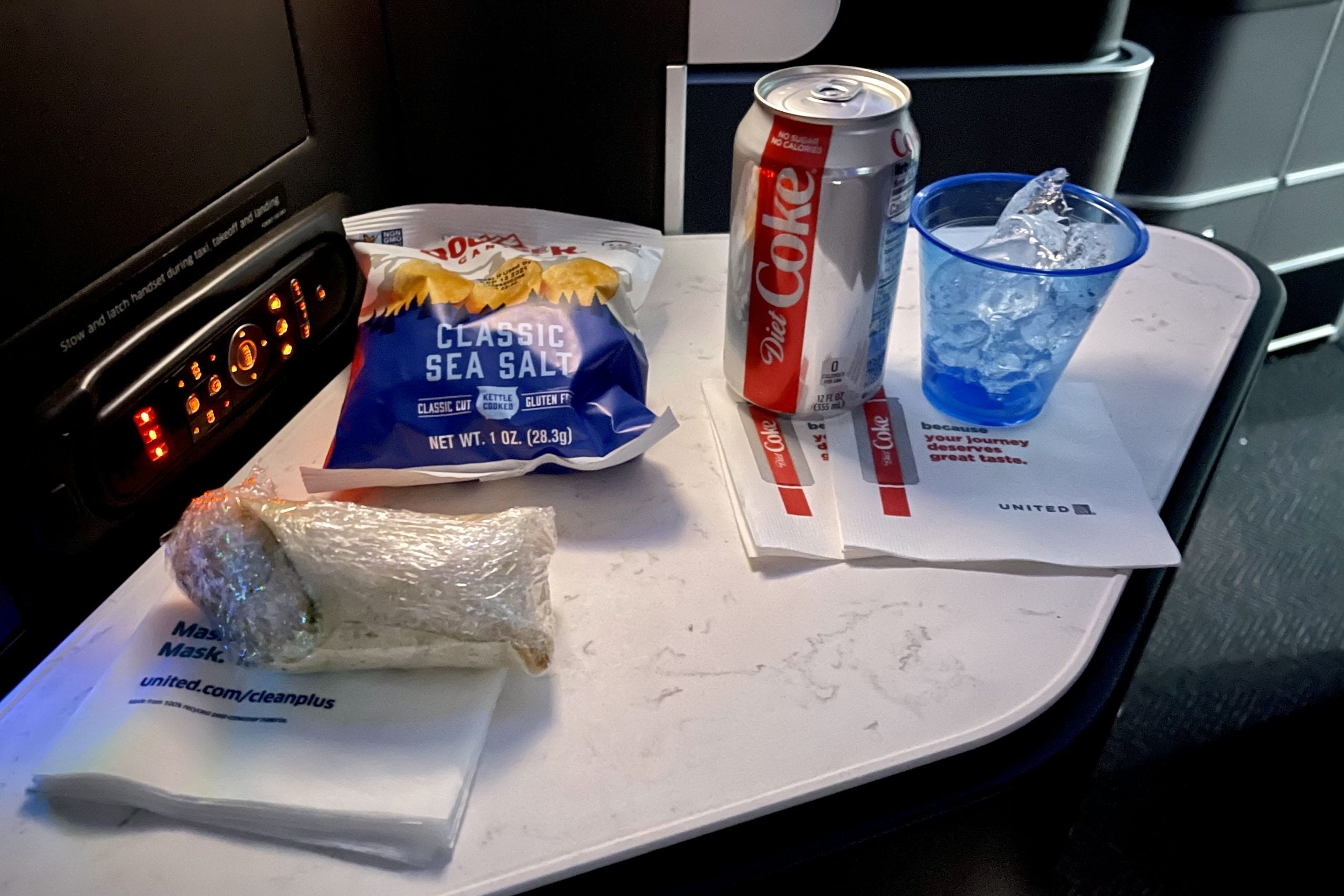 Still, the turkey wrap hit the spot, and it's always such a treat to have soda on the plane, since I never drink it on the ground.