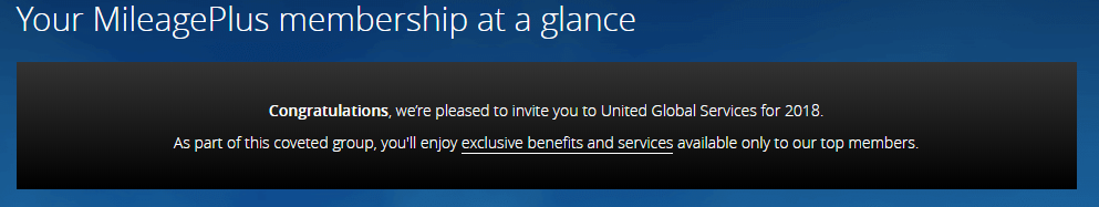 Even if you've earned Global Services status, though, it might not yet appear in your account. Instead, you need to head over to mystatus.united.com to see where you're at. You know you're in for a treat if you see the message below: