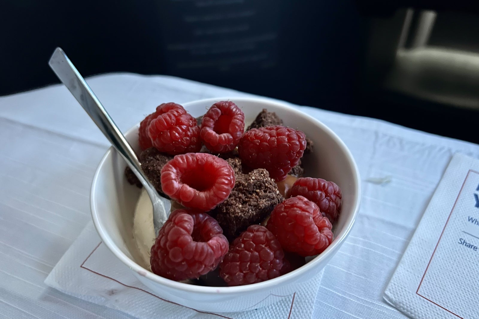 Delta, on the other hand, brought back three-course meals to business class last March. This included the return of a create-your-own ice cream sundae bar, with the final creation pictured below.