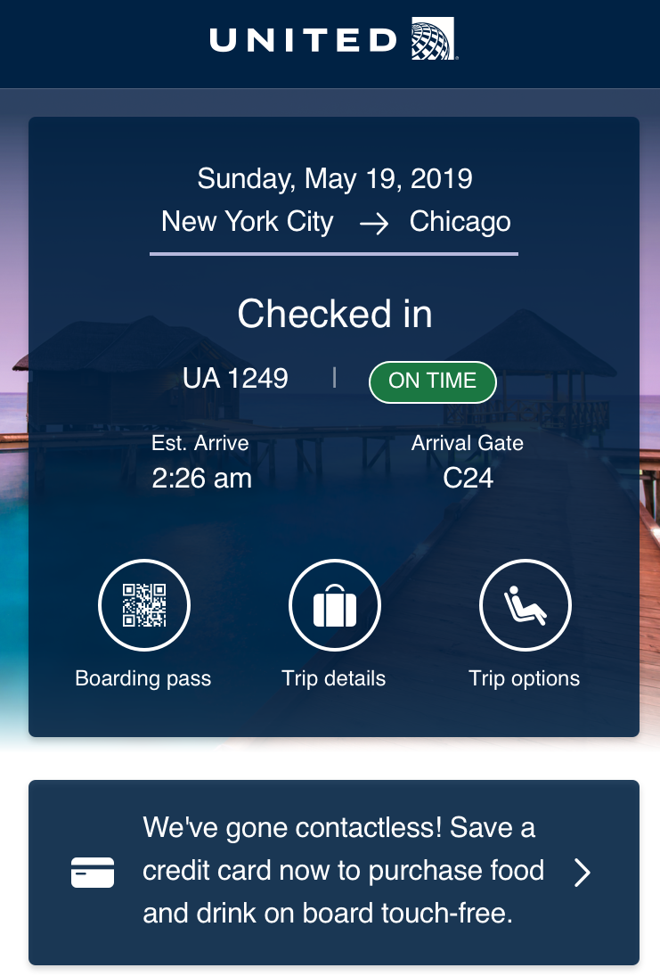 Though buy-on-board is (slowly) resuming, the purchase process is going to look a lot different than before the pandemic. That's because United is piloting a new touchless, digital payment system.