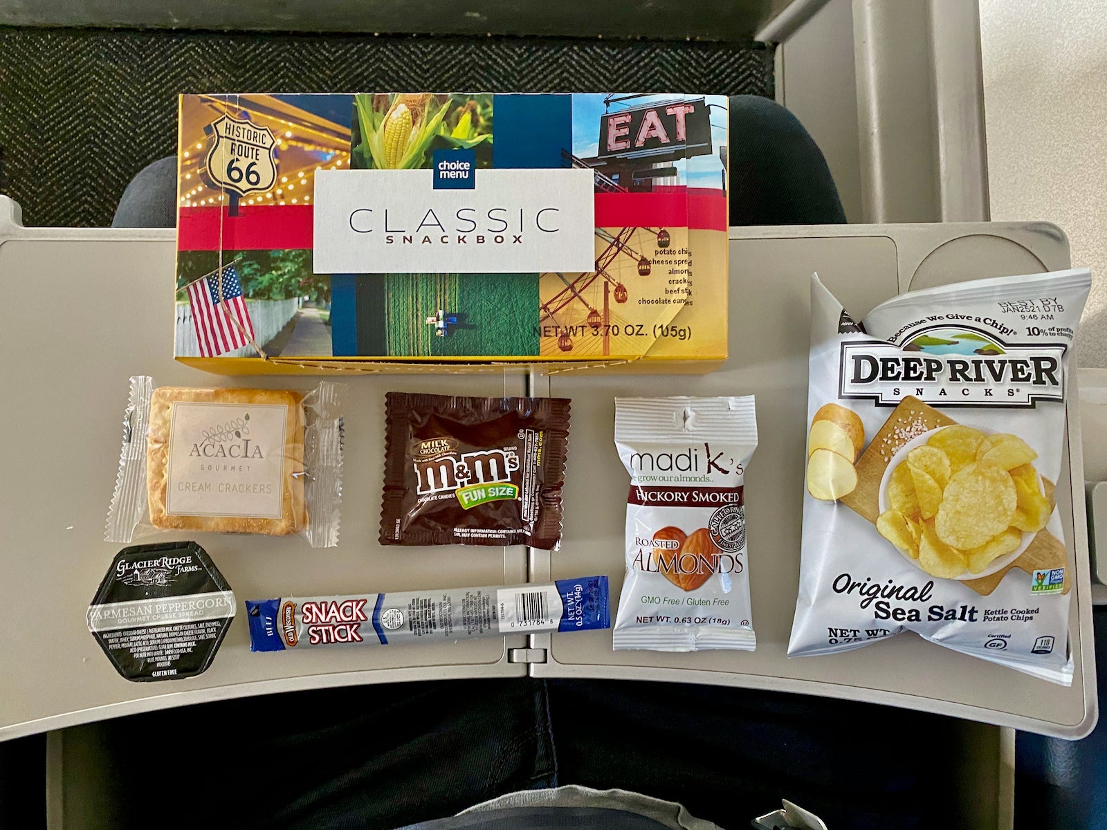 If you aren't a top-tier elite, the options include $10 snack boxes, an assortment of $4 to $5 individually wrapped snacks (think Haribo gummy bears or Pringles), $8 beers and $9 half-bottles of wines.