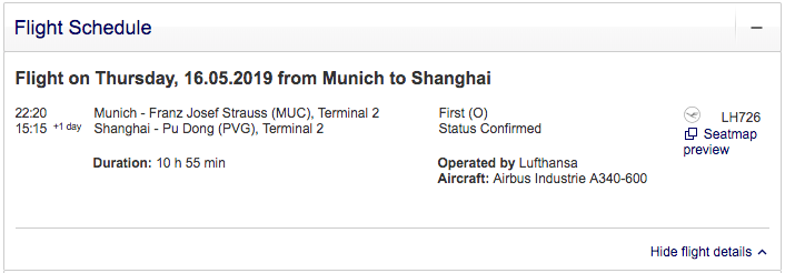 I booked the flight to confirm that it was indeed available, and the reservation was correctly ticketed and confirmed in first class right away — reflected on Lufthansa's end as well.