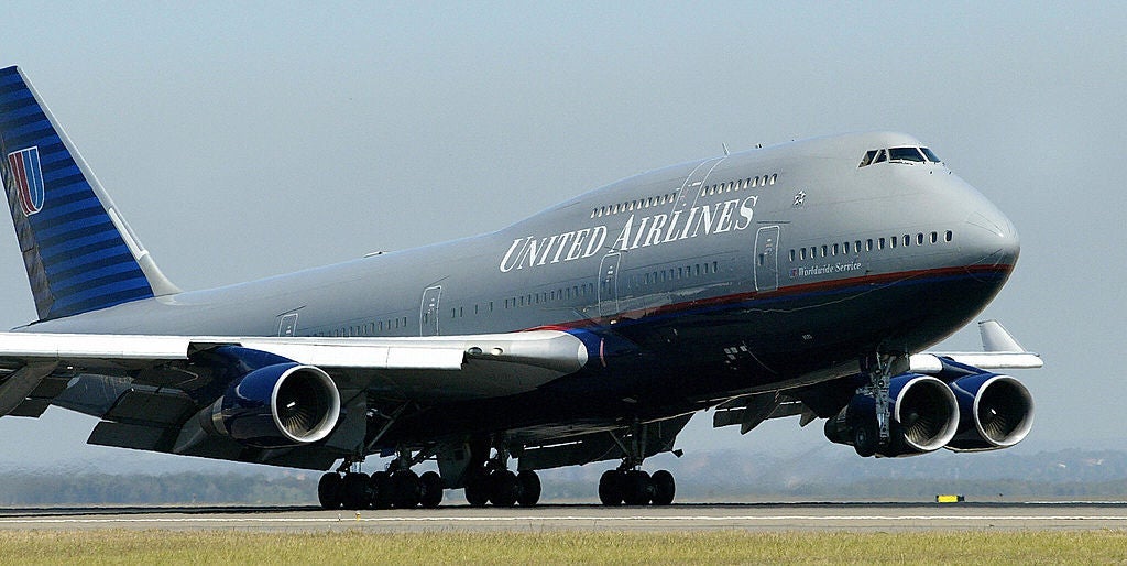 Prior to its latest "globe" design, United flew the "tulip" — the livery seen in this 2008 Boeing 747-400 photo below.