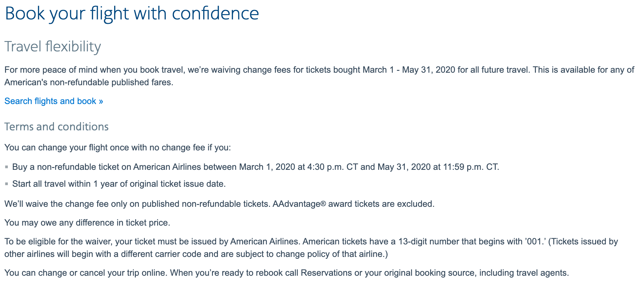Since the major US airlines tend to roll out fairly consistent policies, I checked in with American Airlines to see how the carrier was handling its own waived-fee policy, valid for new flights purchased by May 31. The same language doesn't make an appearance here, though, and an airline spokesperson confirmed that, yes, if you book new flights with a lower fare, "the residual value would be issued back in the form of an electronic travel voucher."