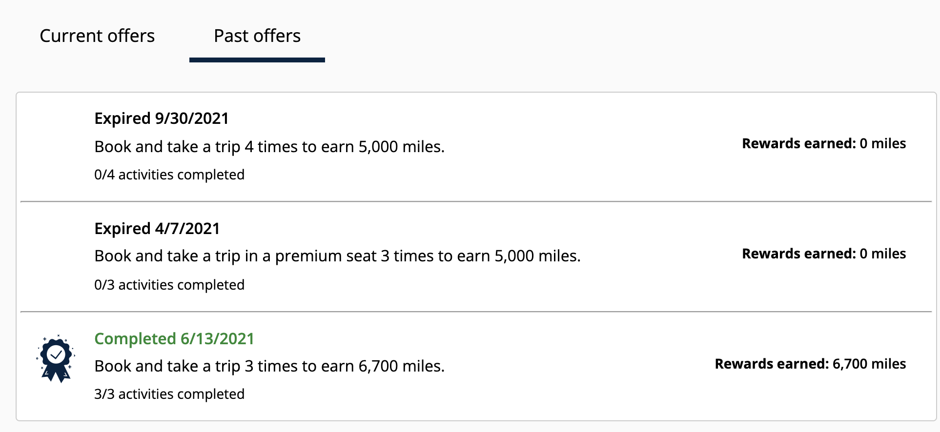 In the past, TPG staff members have received a variety of offers, including earning 2,500 to 8,000 bonus miles just for booking one round-trip ticket on United Airlines. While I don't have any current Mile Play offers, I have been targeted three times over the past year: