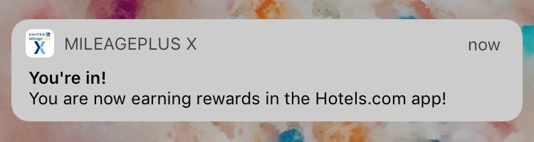 Each brand has its own fine print on eligibility. Some apps, like Hulu, will open up a browser window within the MPX app itself. Others, like Hotels.com, will direct you to either install or open the merchant app within the MPX app. You'll receive a push notification when the merchant connection is successful:
