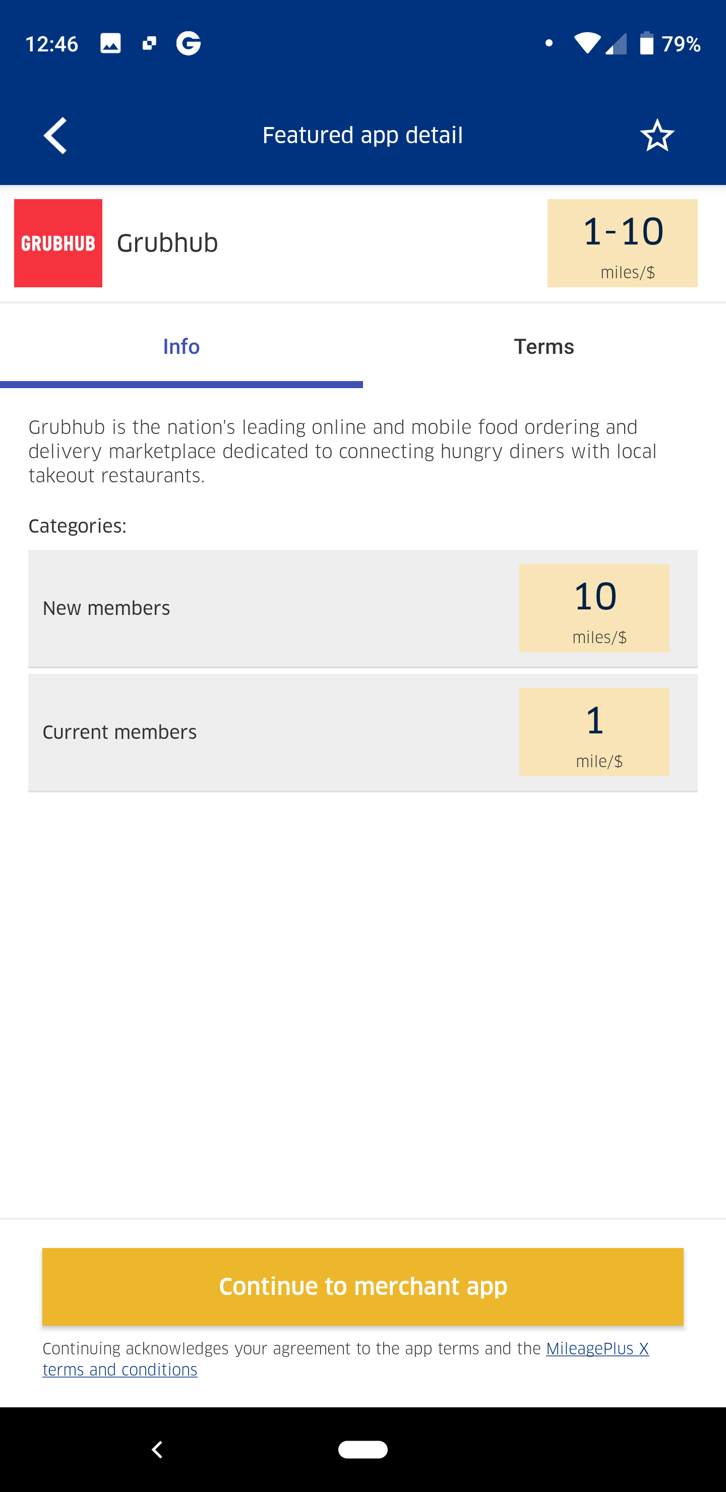 Clicking on "continue to merchant app" will launch the Groupon app within MPX, which automatically tracks the purchase. The terms specify that United miles will not be earned on taxes or delivery fees, nor can mileage earnings be stacked with promotions, coupons or payments made using Groupon Bucks — the merchant's version of store credit.