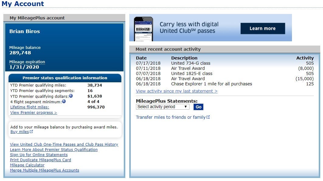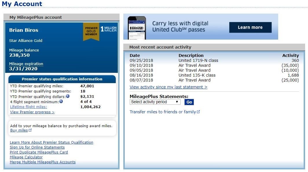 When I first signed up for a United Mileage Plus account. I filled out a piece of paper at the gate before flying to Buenos Aires to study abroad in the summer of 2003. 15 years and 996,370 flight miles later, I found myself on the cusp of the prestigious United Million Miler status and the accompanying lifetime Premier Gold status. This was especially notable for me, since I've been without airline status the past few years.