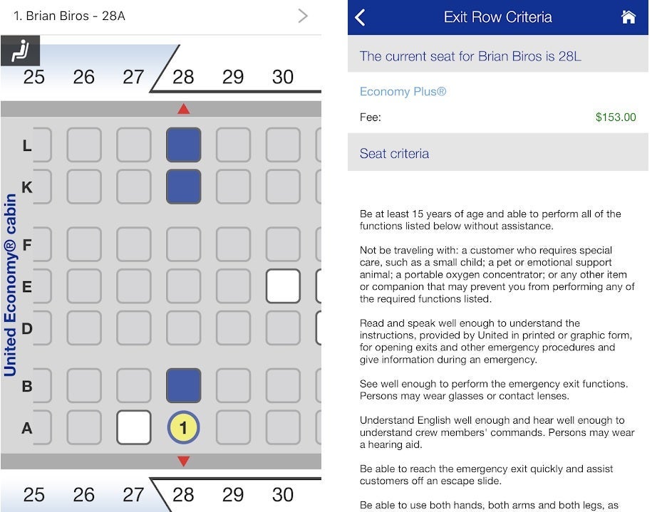 At this point, I was still seated in regular economy, so I told the gate agent this was my million-mile flight and hoped for some recognition. She didn't seem very impressed, so I very nicely asked if she could give me a better seat -- perhaps economy plus or exit row -- and she said she'd have to charge for it. I stood by as she looked at the seat map, then she seemed to relax a bit and crack a smile as she printed out a new boarding pass. She had given me an exit row seat, 28A, for free.