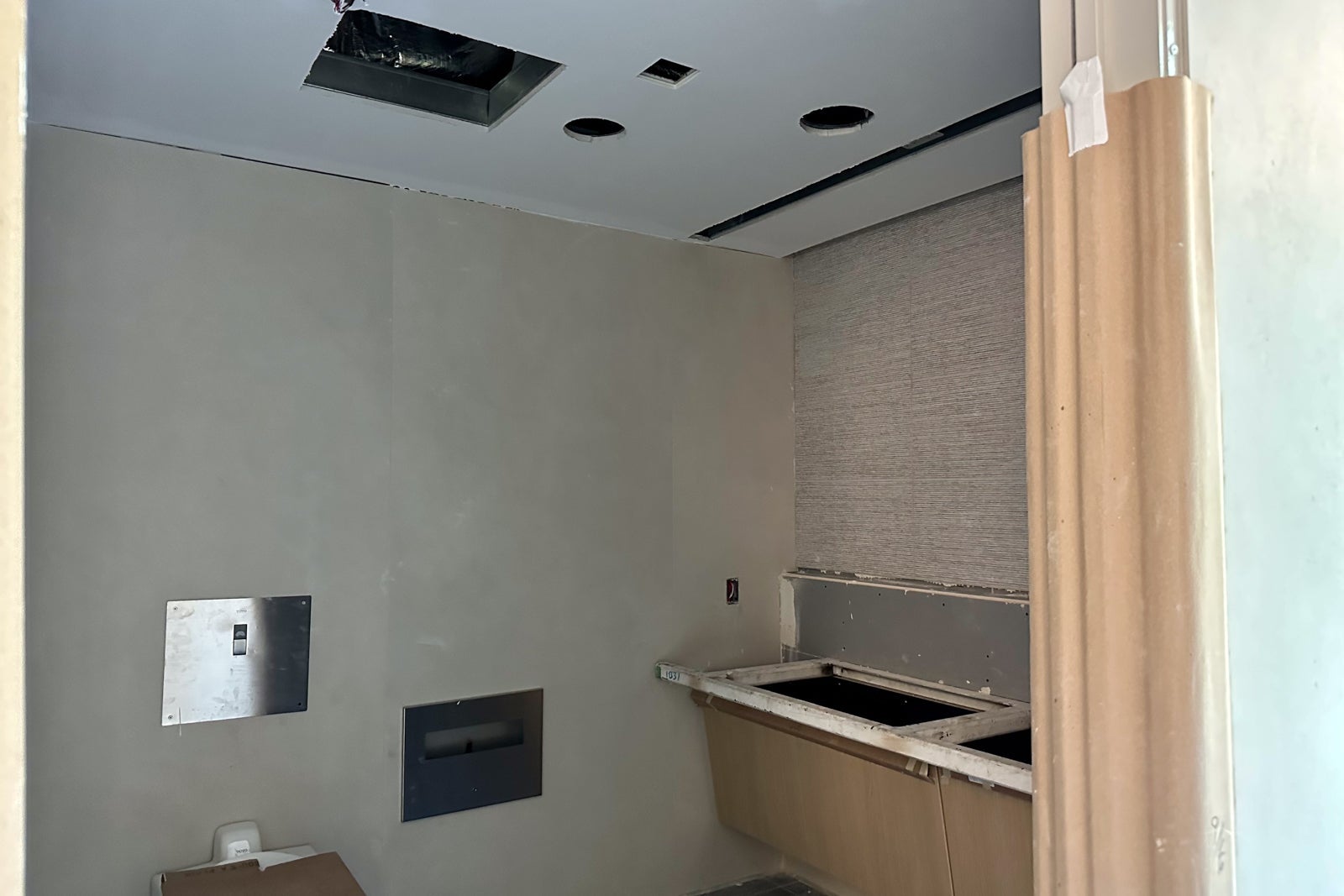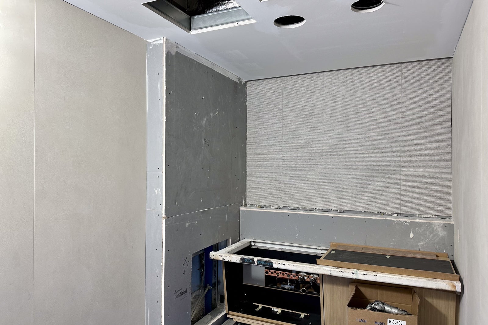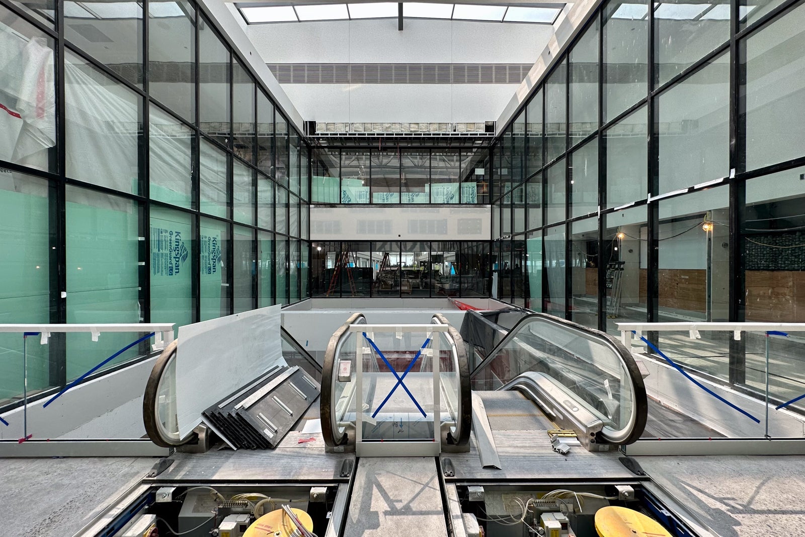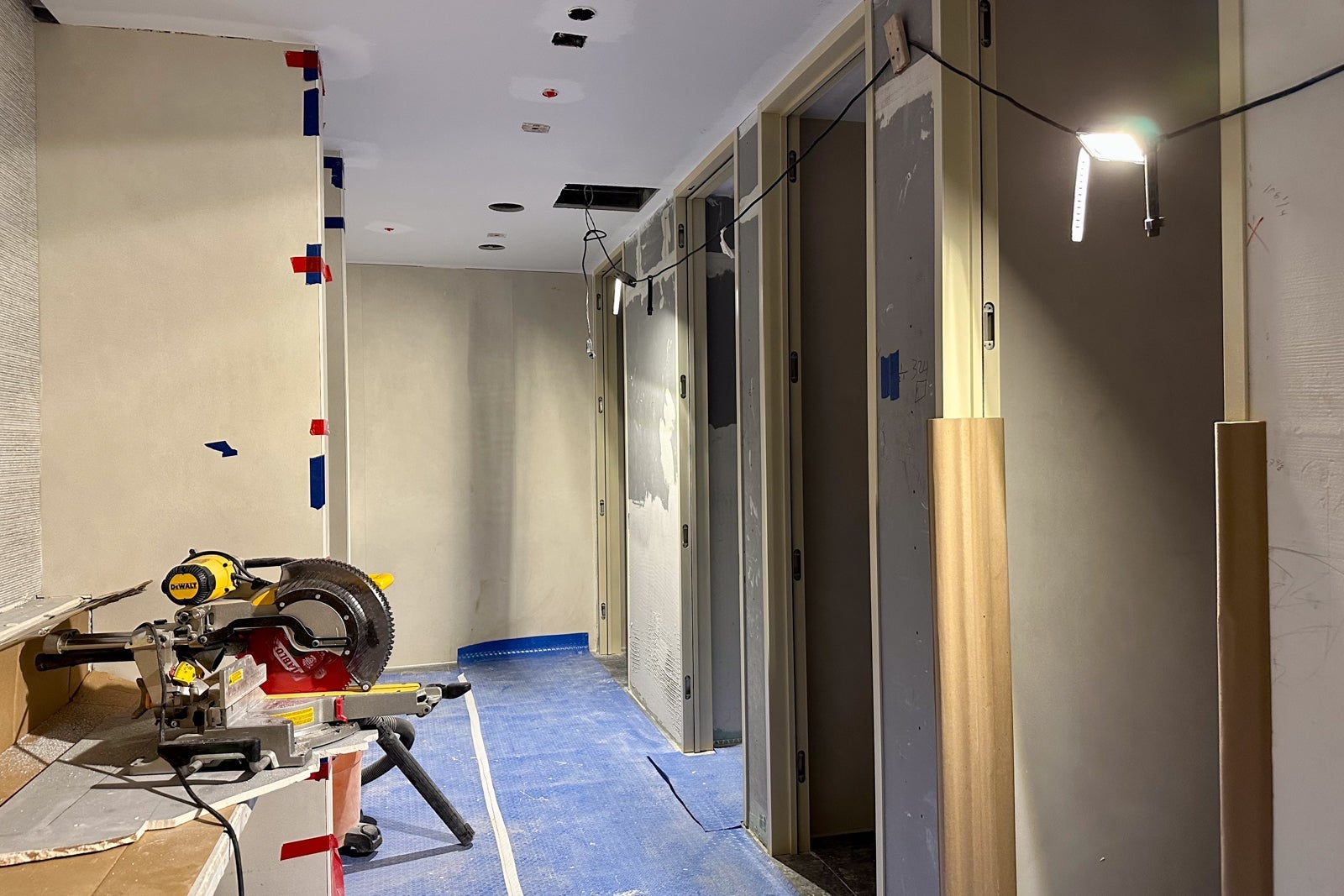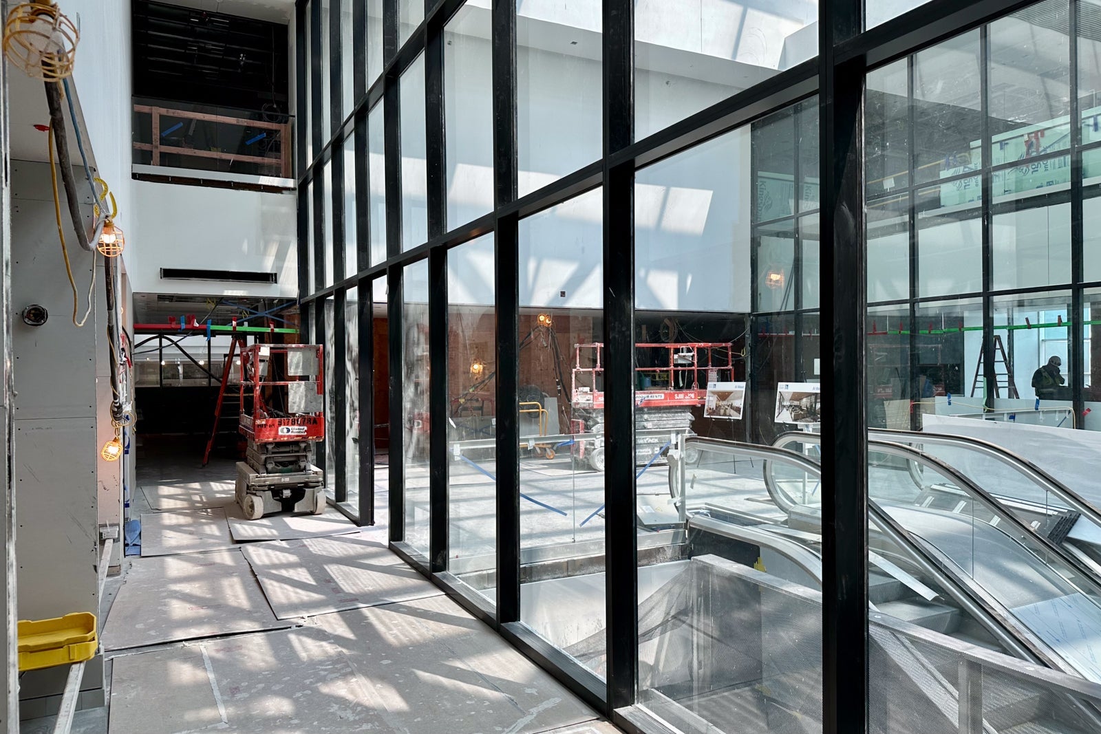 The lounge was still very much under construction when I visited in May, but you could already begin to see the Colorado inspiration. For instance, United installed gabion walls around the perimeter of the entrance hallway in a nod to the rock-filled walls that line Interstate Highway 70 to prevent boulders from falling onto the road.