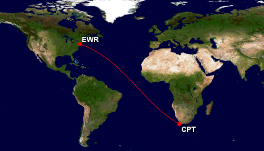 - Cape Town (CPT) 8:50pm Departure → Newark (EWR) 5:45am (+1) Arrival (Mon, Thu, Sat)