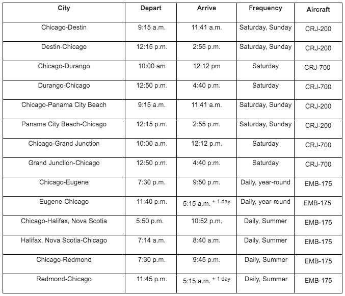 Beginning in June 2019, Unite will add seven flights from Chicago, operated by a mix of CRJ and Embraer regional jets.