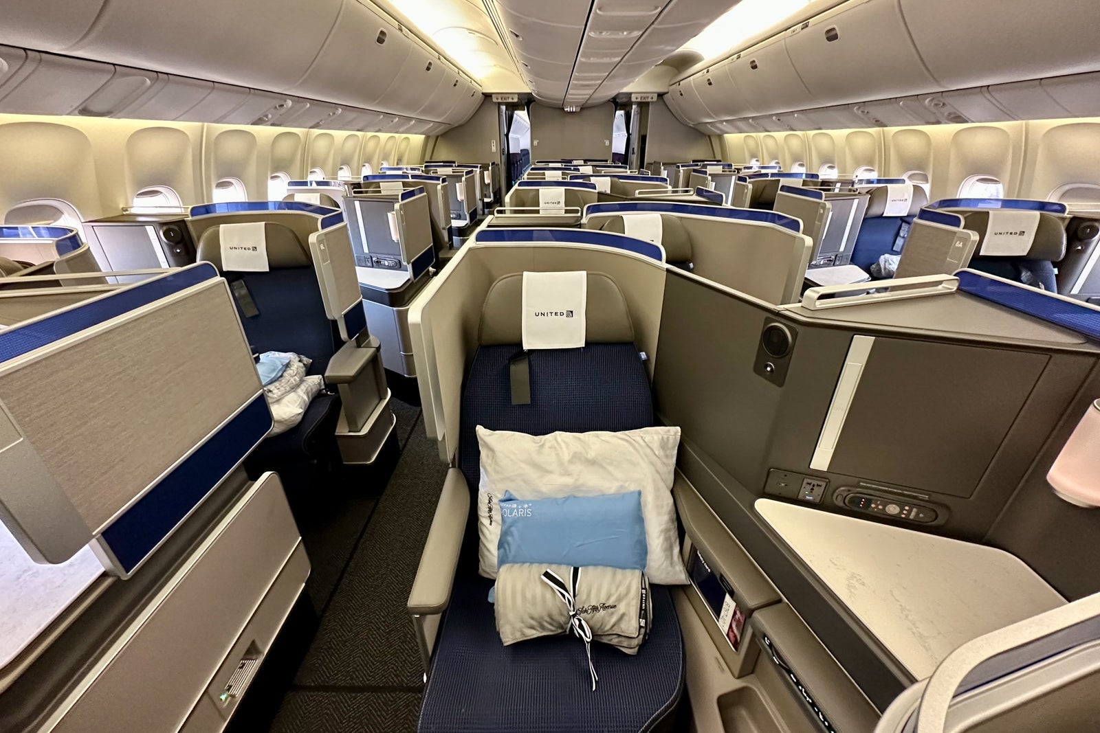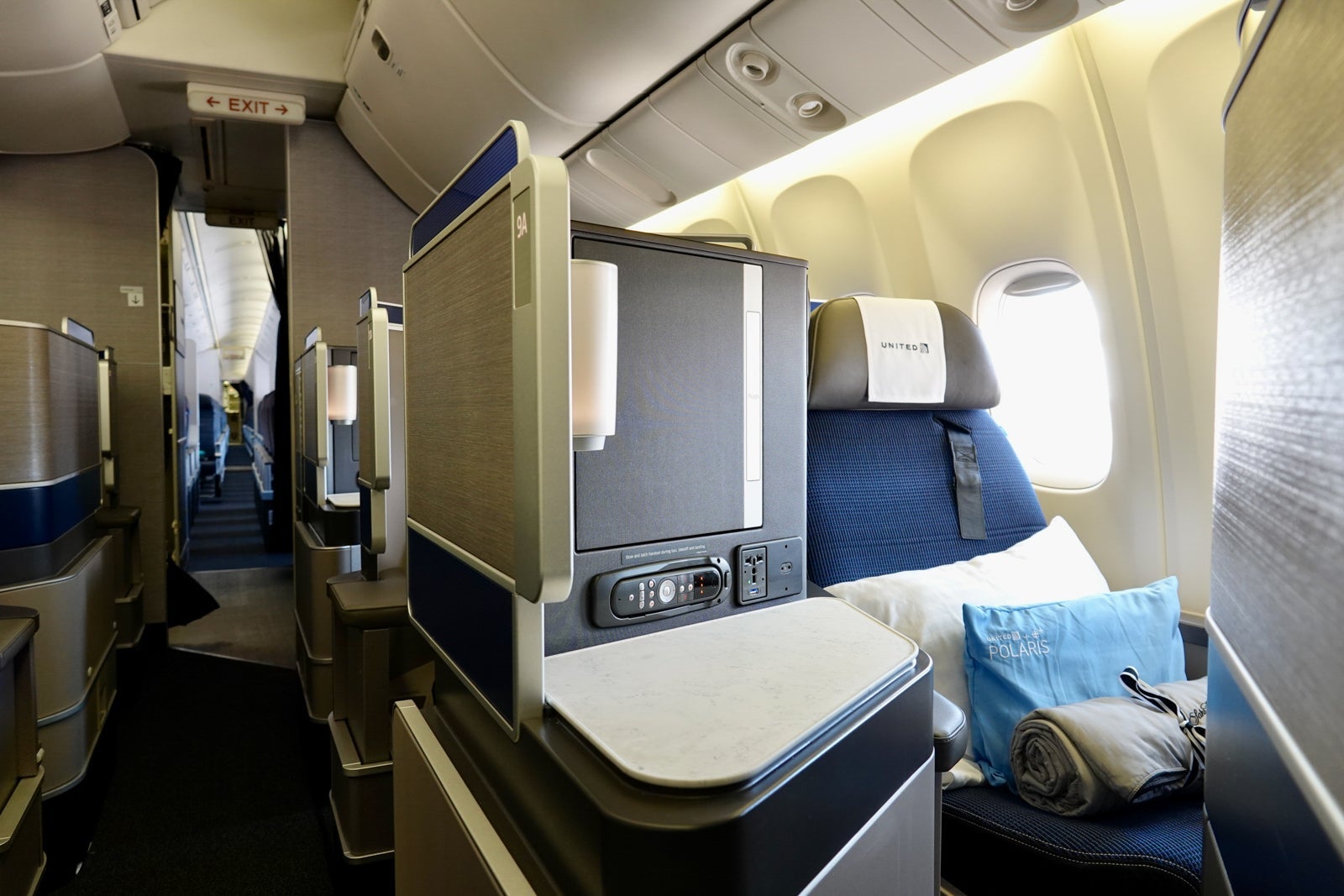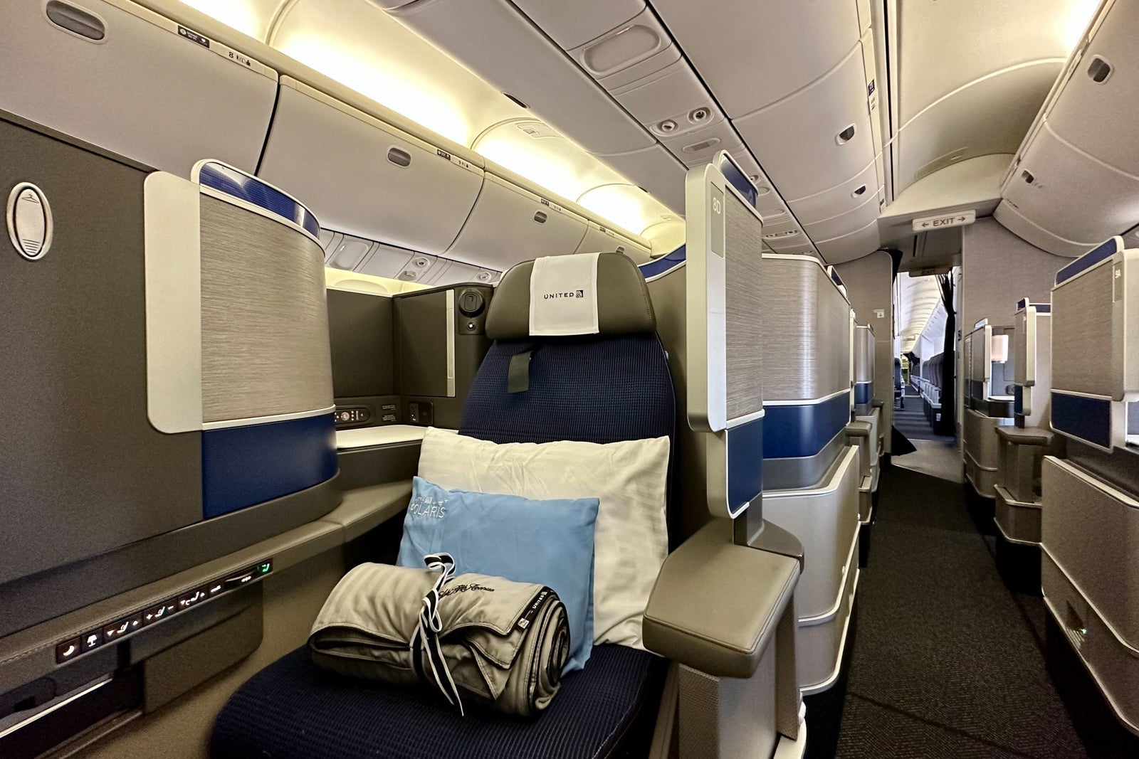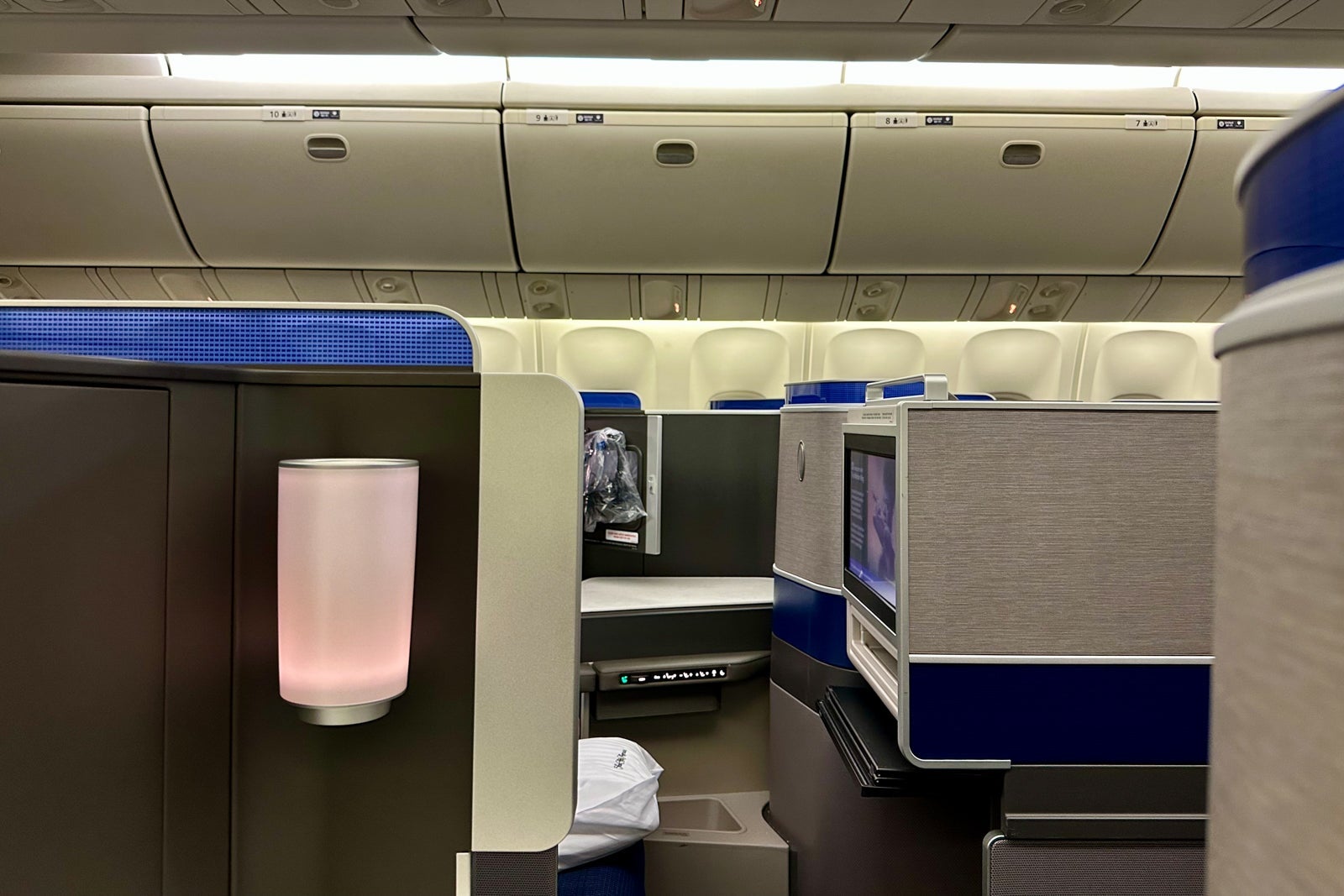 The cabin and seats themselves will likely be pretty familiar to anyone who has flown in Polaris before. (The white United-branded headrest covers were just a special treat left by the cleaning team who knew that I would be flying on this plane.)