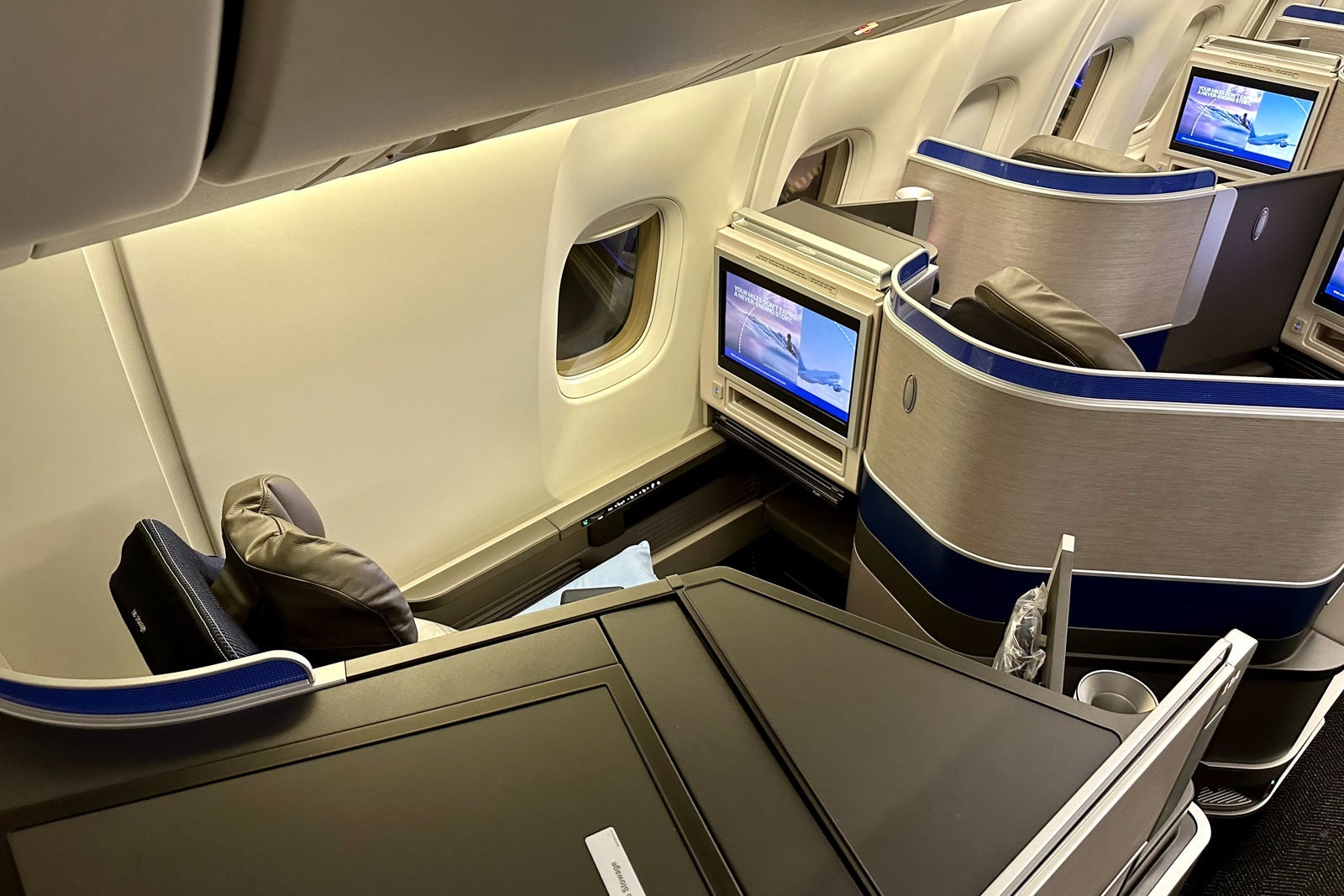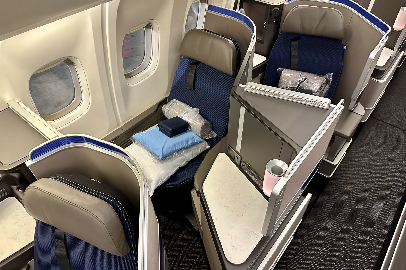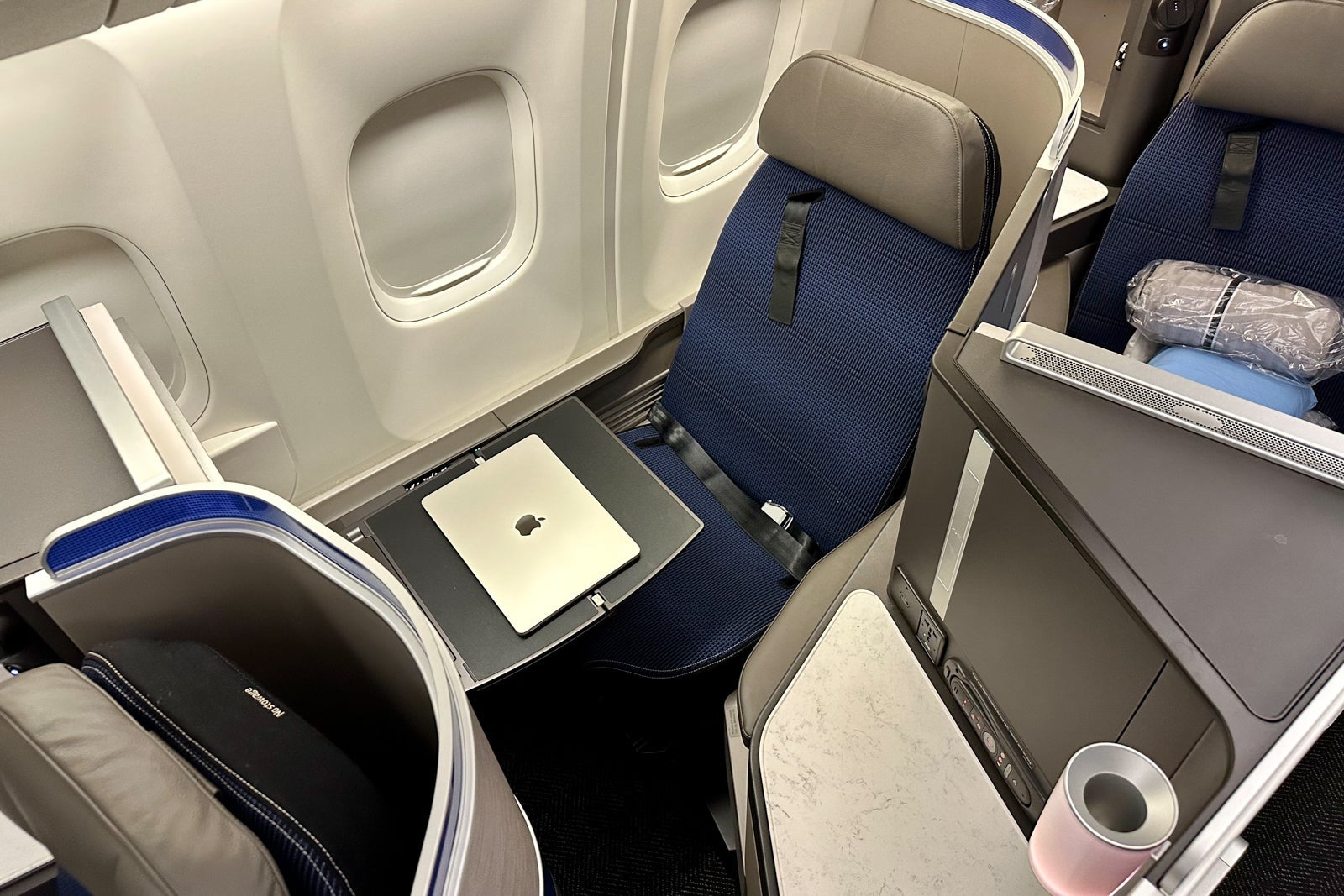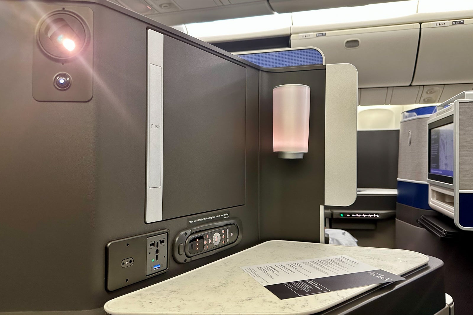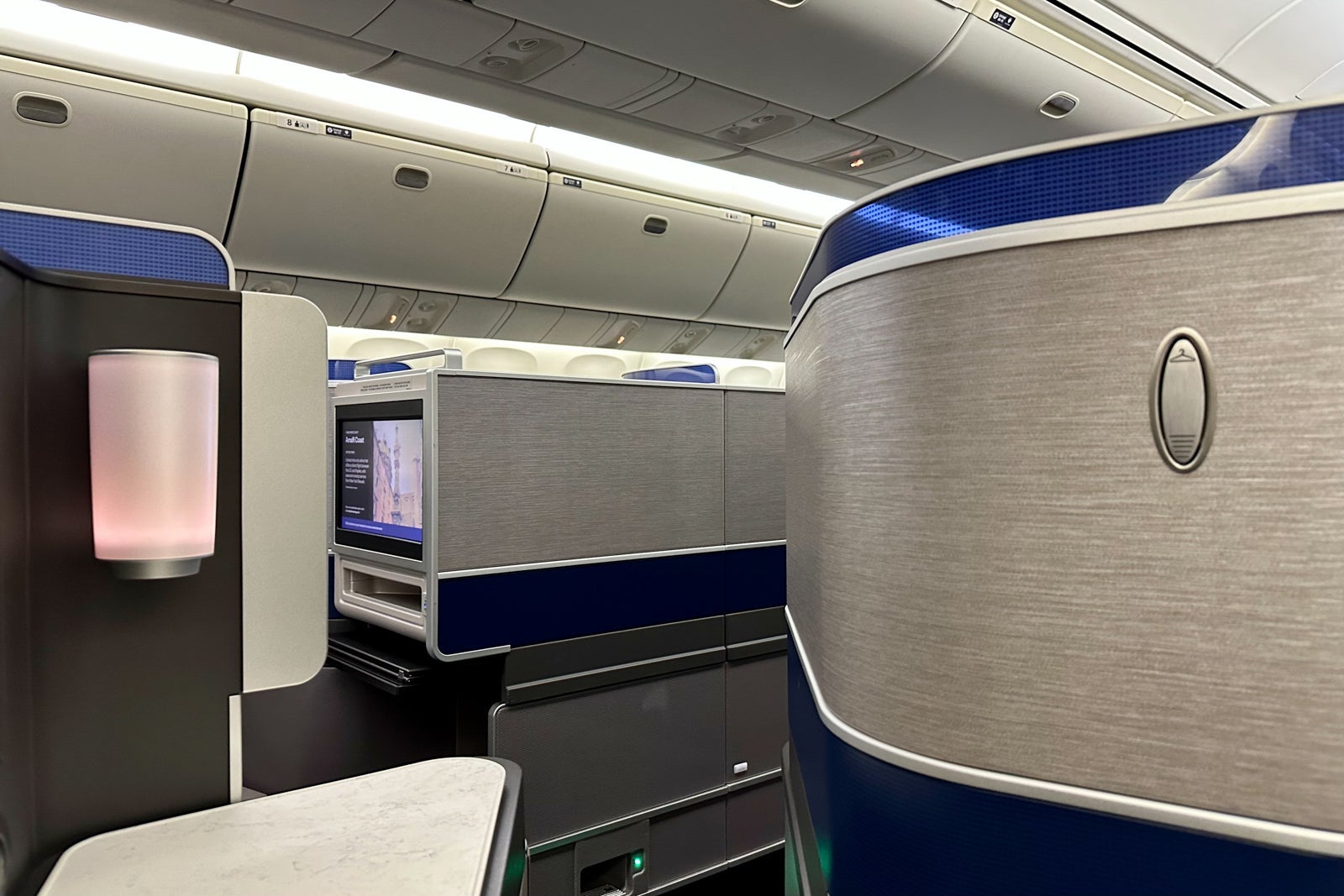 The cabin and seats themselves will likely be pretty familiar to anyone who has flown in Polaris before. (The white United-branded headrest covers were just a special treat left by the cleaning team who knew that I would be flying on this plane.)