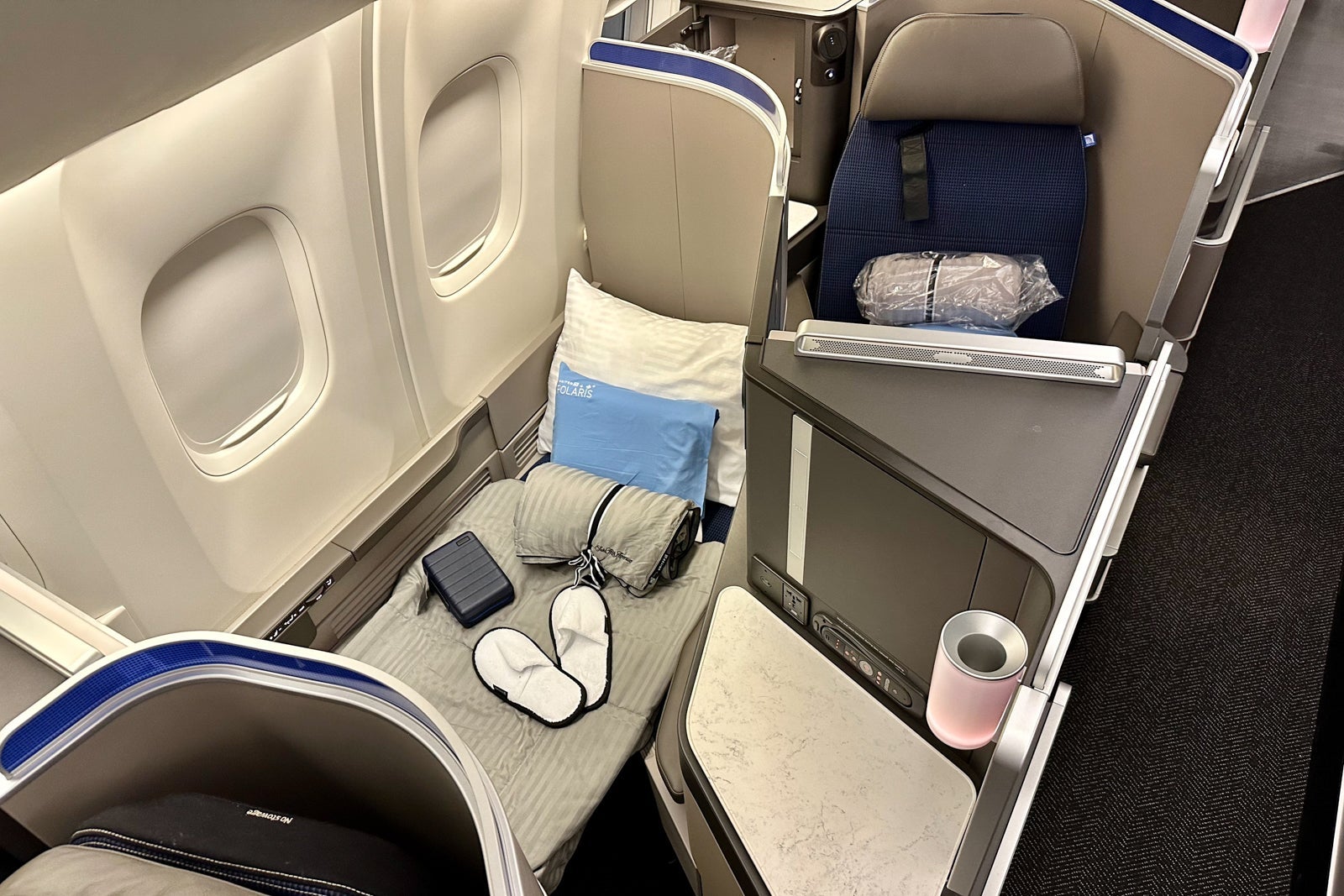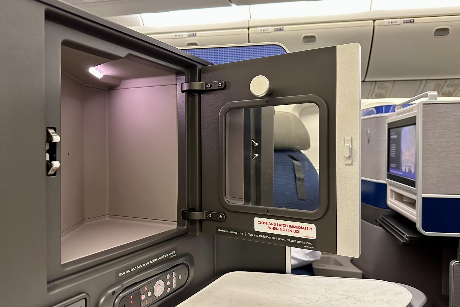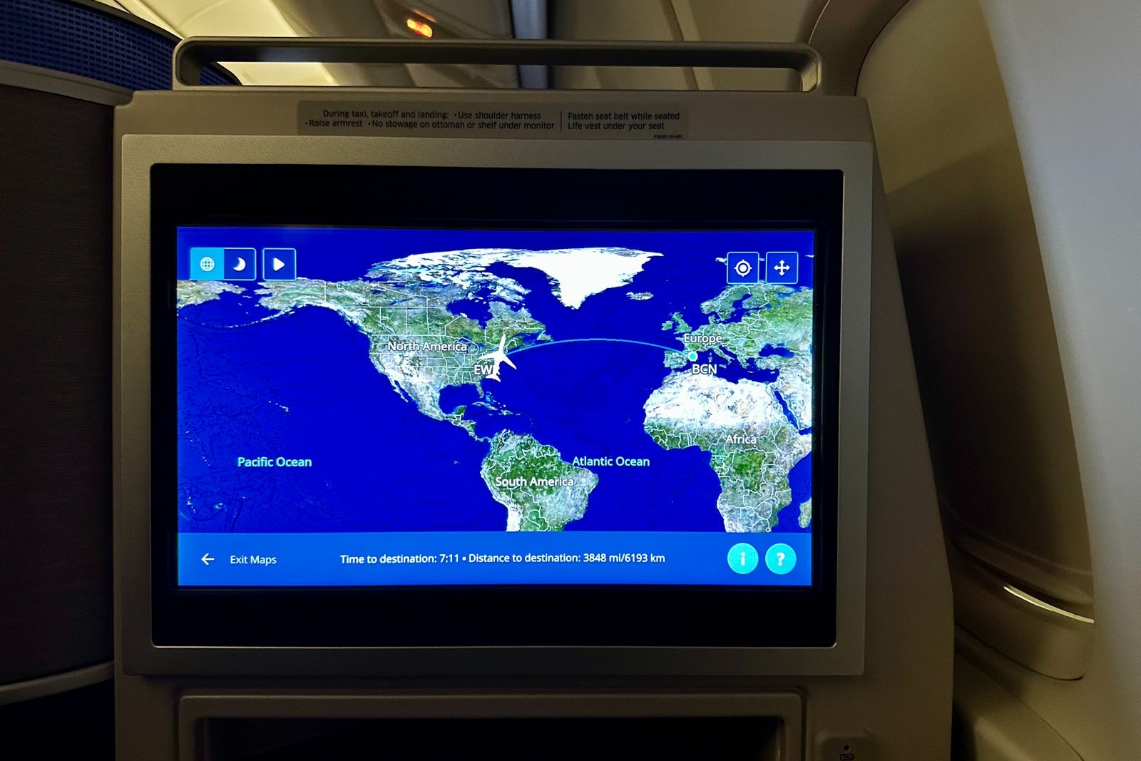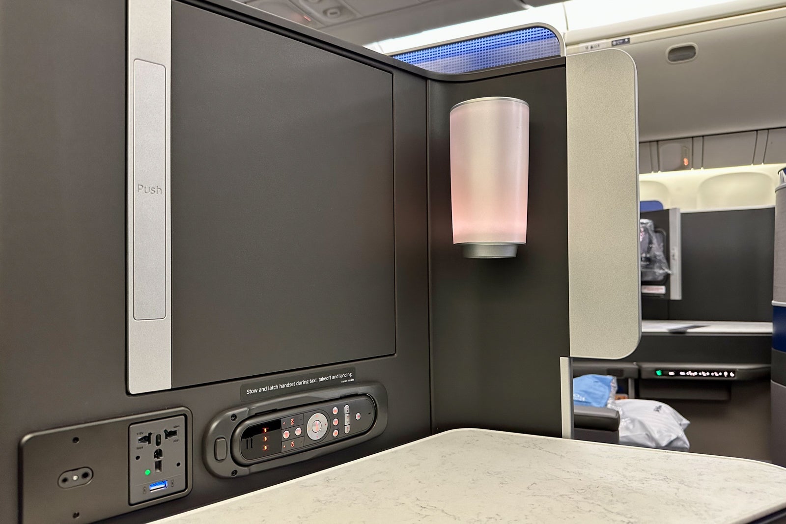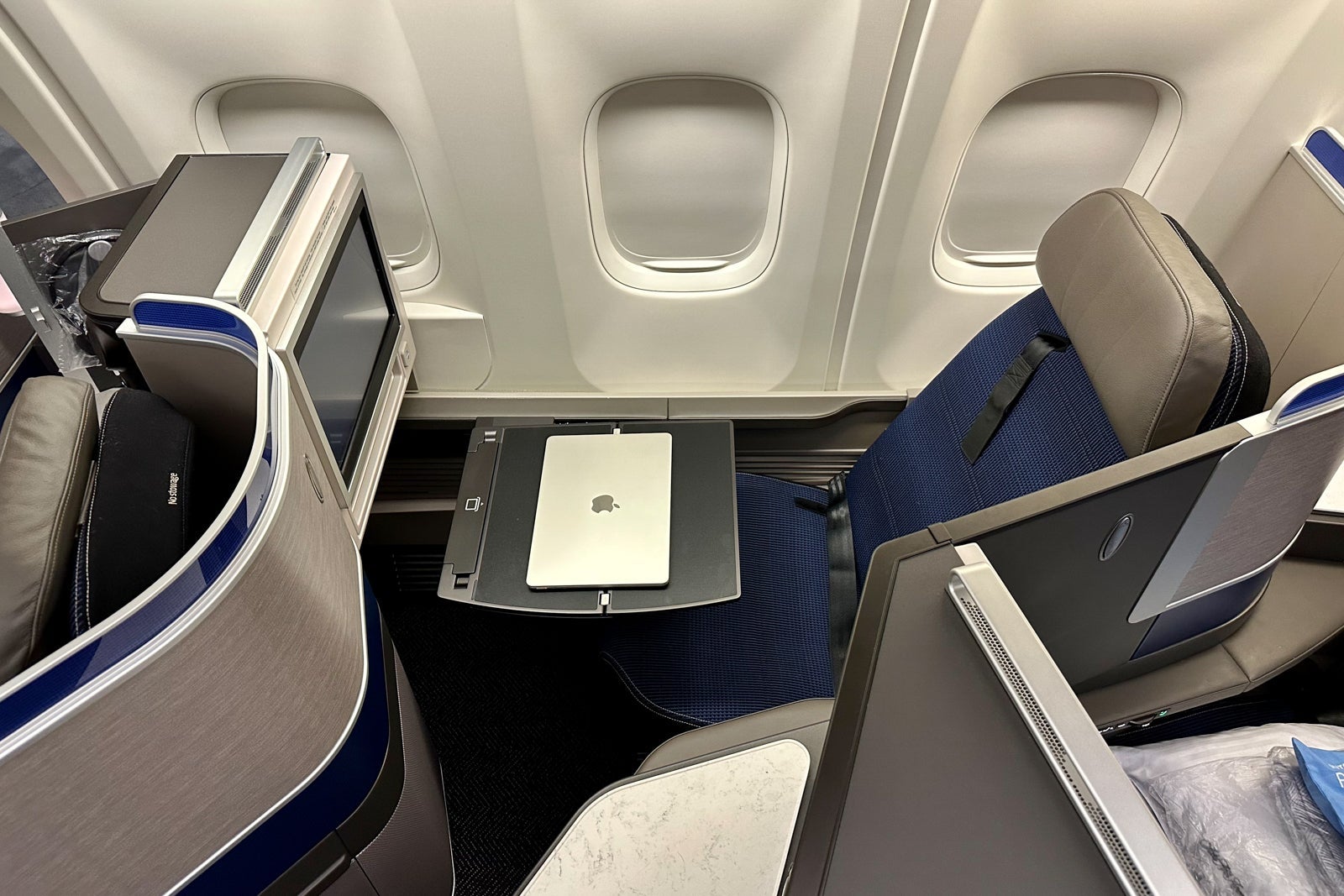 The cabin and seats themselves will likely be pretty familiar to anyone who has flown in Polaris before. (The white United-branded headrest covers were just a special treat left by the cleaning team who knew that I would be flying on this plane.)