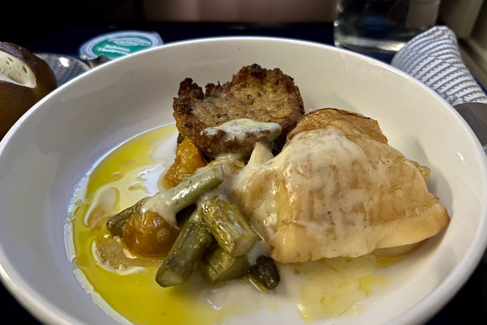 The fish itself was somewhat bland — a bit overcooked and drowned in a buttery sauce — but it wasn't nearly as tasteless or as visually unappealing as some of the entrees I've had with United in recent months.