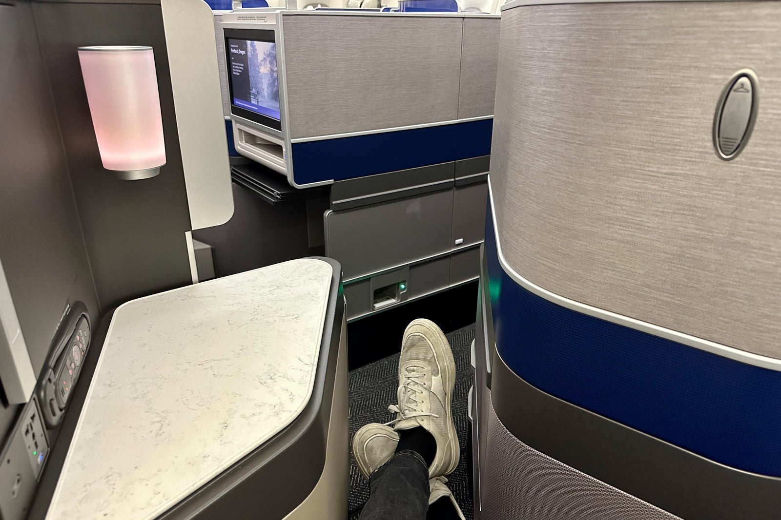 That said, the footwells on the 767-400 definitely felt narrower than those you'd find on United's wider jets, such as the Boeing 777. Those with long feet might feel claustrophobic when sleeping in most of these pods, except for the bulkhead — more on that below.
