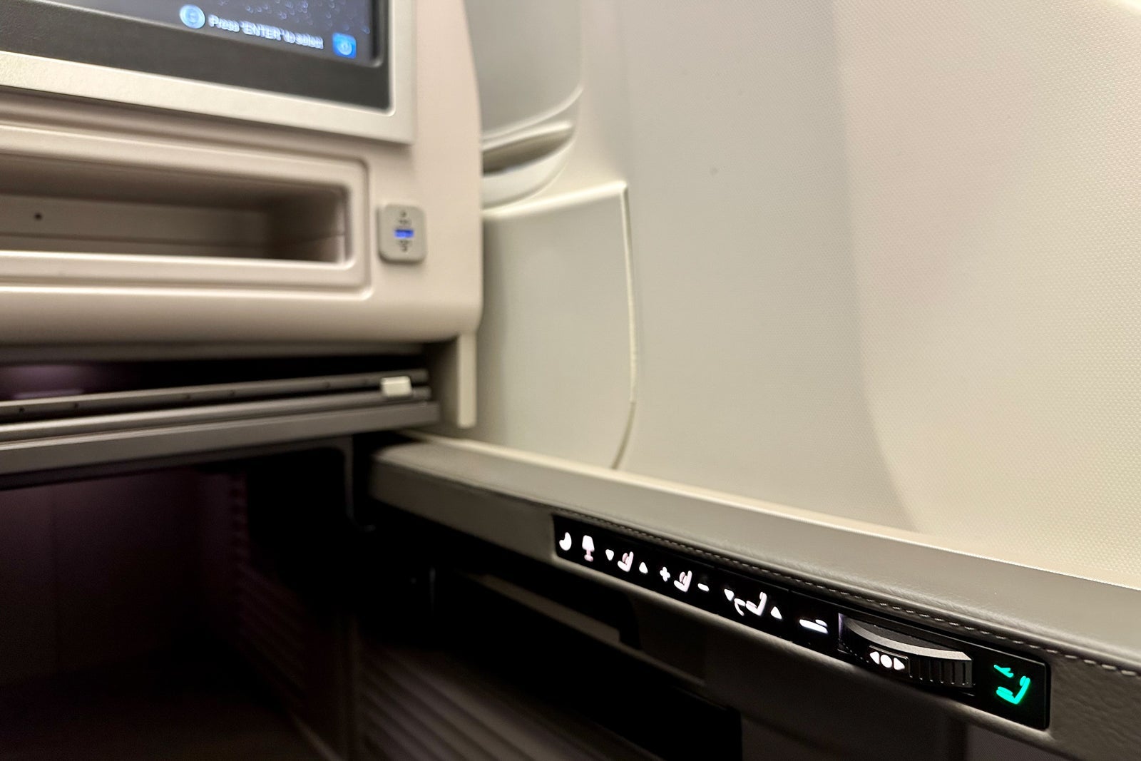 Each seat features a 15.4-inch touchscreen TV that can also be controlled using the retractable remote that's attached to each seat.