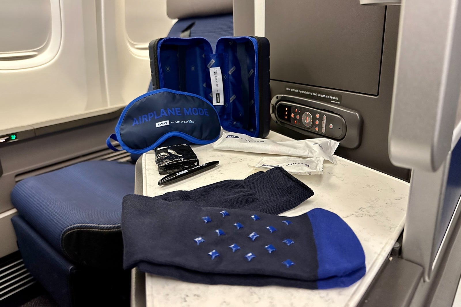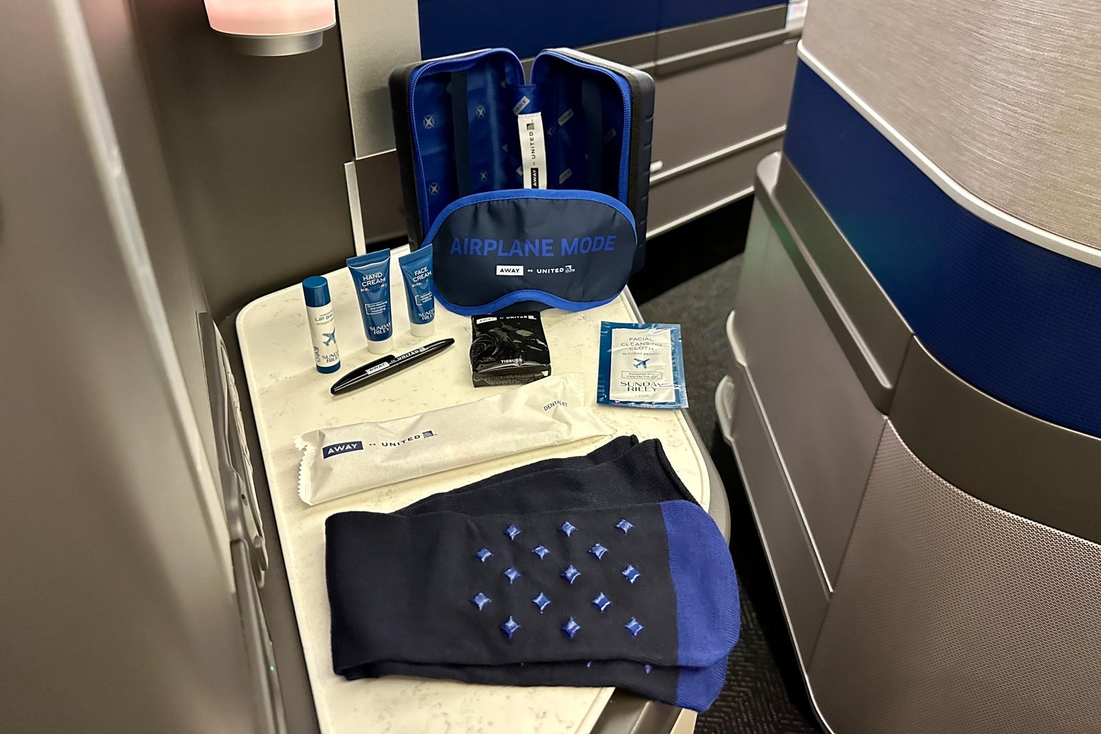 Also waiting at my seat were United's new Away-branded amenity kits, which continue to be a hit with flyers. You'll find all the usual goodies inside, along with Sunday Riley lip balm, hand cream and face cream.