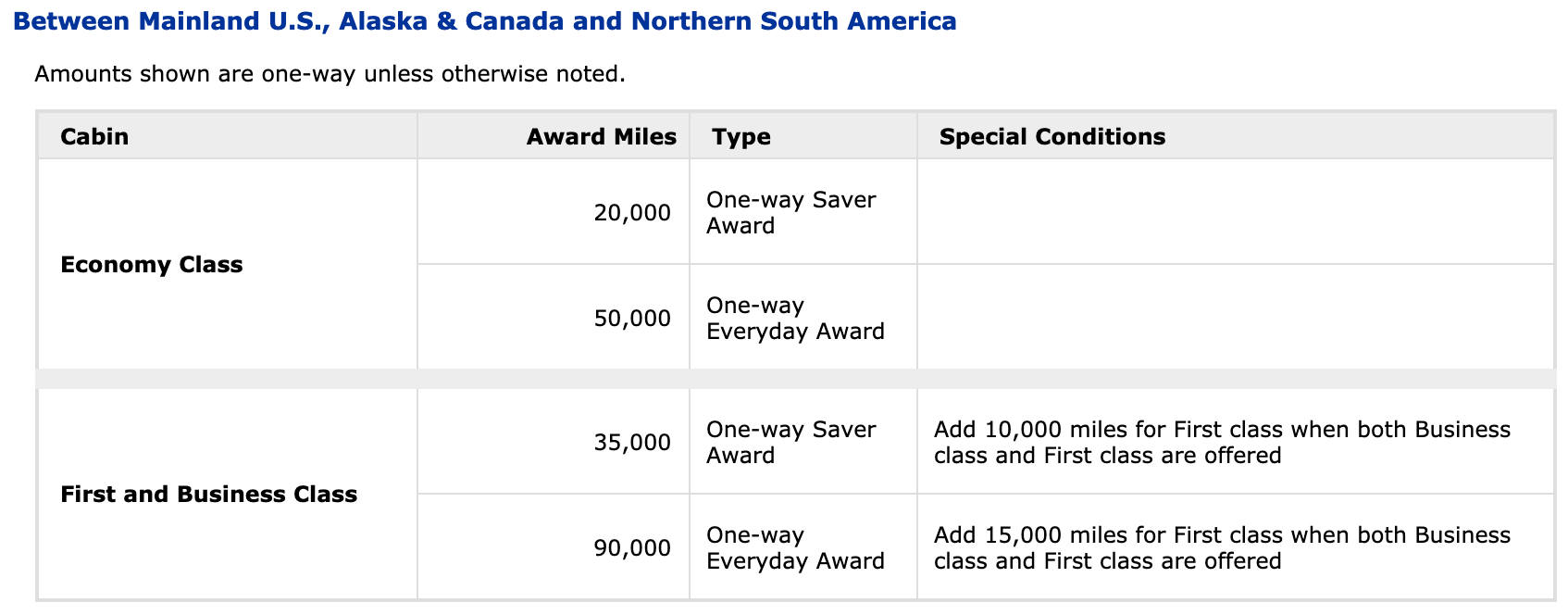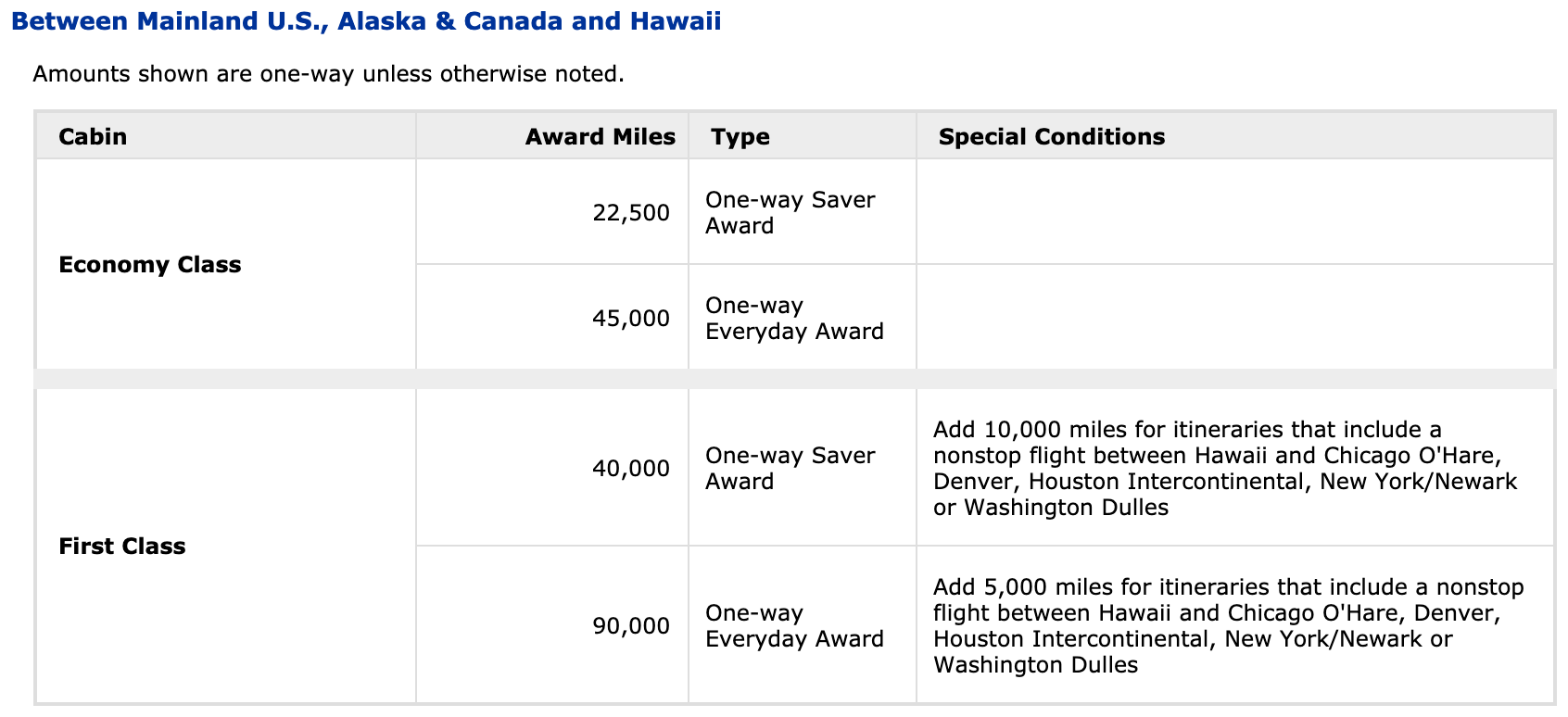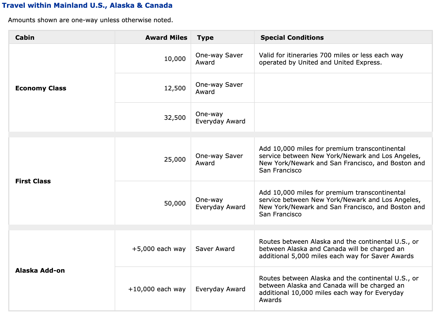 Pulling the charts eliminates much-appreciated transparency, but not to worry — I've added them all below (for travel including the Mainland US, Alaska and Canada), so they'll serve as a reference even after United deletes them from the site later this year.