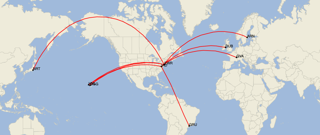 - Washington Dulles (IAD) and São Paulo, Brazil (GRU)