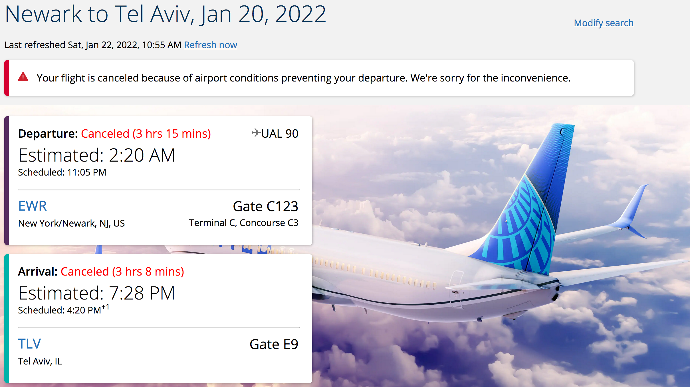 United Airlines Flight 90 started out like any other flight. It took off from Newark Liberty International Airport (EWR) on time at 11:05 p.m. Thursday, January 20, bound for Tel Aviv's Ben Gurion International Airport (TLV). Normally it takes roughly 10 hours of travel time on a Boeing 787-10, but the flight only made it a bit more than an hour from New York before turning around.