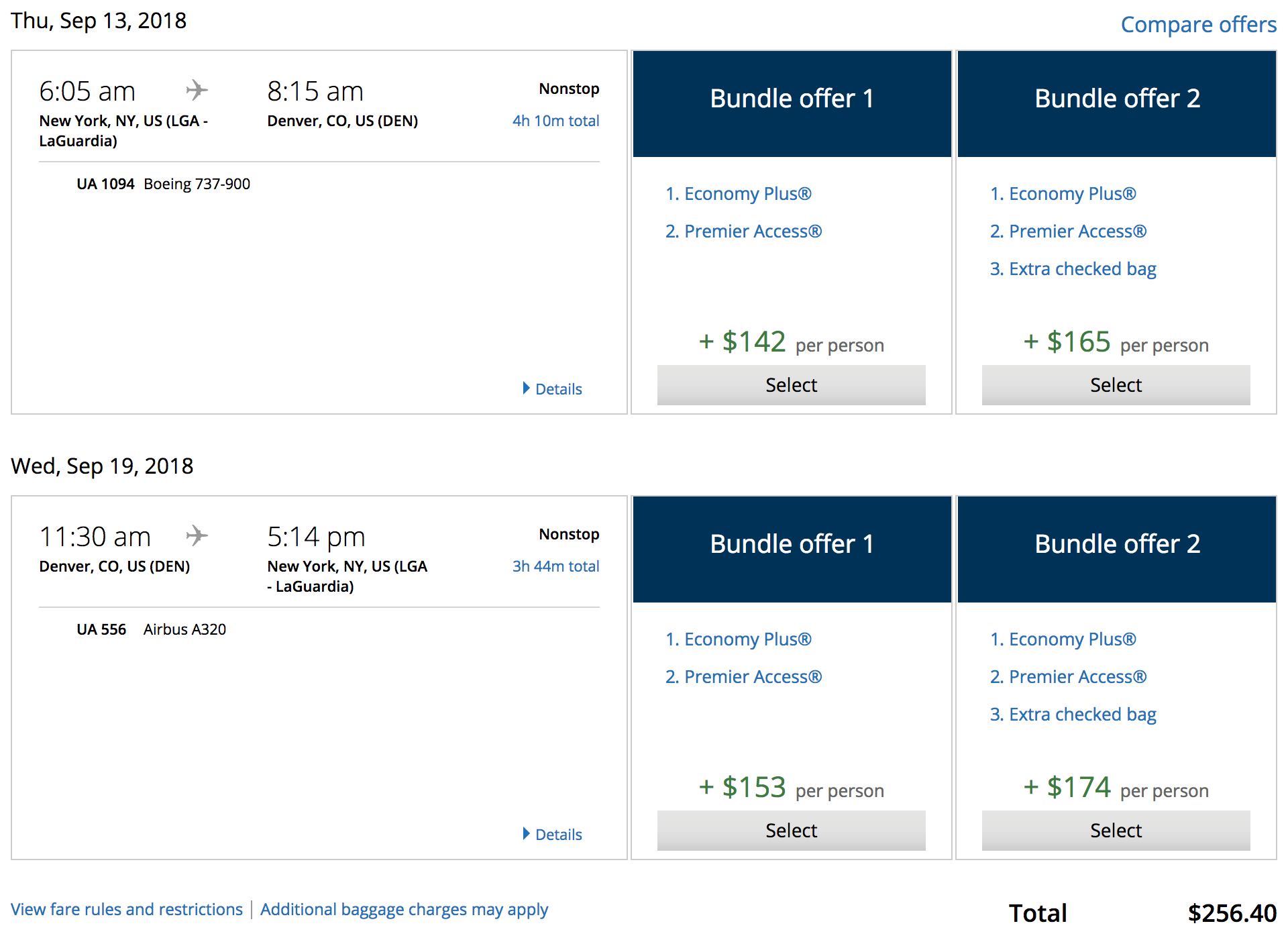 Boutique's selling its own flights for $294 round-trip, however — as a result, you'll pay $550 when booking these same flights separately, a savings of $257 over United's single-itinerary price.