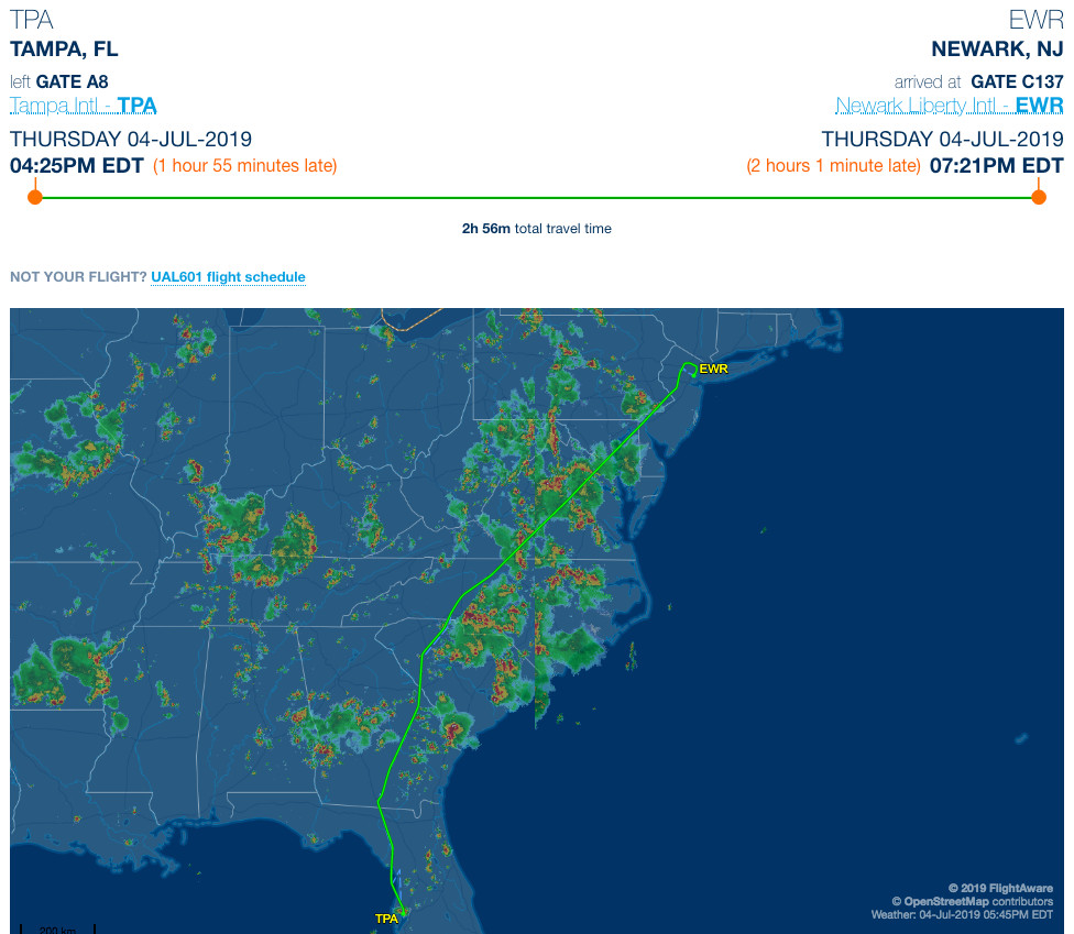 Last week, United flyer Laura Webb was making her way from Tampa (TPA) to Dublin, Ireland, (DUB) for a wedding, with a connection in Newark (EWR). Unfortunately her first flight ended up getting hit with a two-hour delay. Ultimately, the flight arrived just four minutes before her Europe connection's scheduled departure time of 7:25pm.