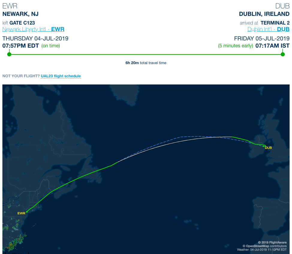 In the end, the flight ended up pushing back a few minutes behind schedule, but due to generous transatlantic tailwinds, arrived in Dublin ahead of schedule — with Laura onboard.