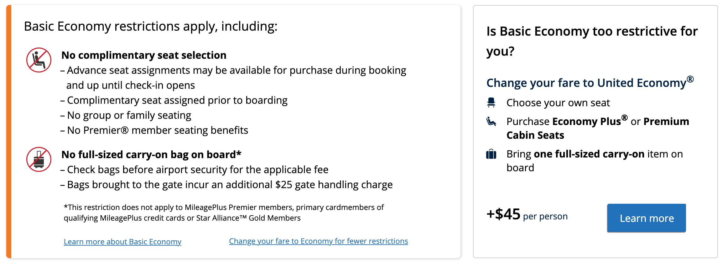 Fortunately, United just unveiled a new way to avoid the aforementioned restrictions, as confirmed by a carrier spokesperson. With the airline's new "Switch to United Economy" offering, flyers booked in basic economy will have the opportunity to purchase an upgrade to a regular coach ticket.