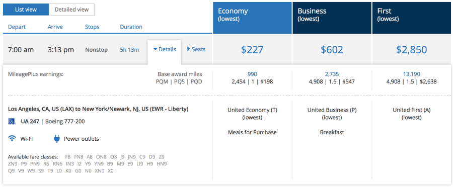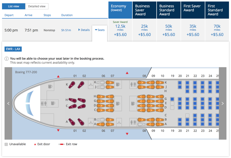 If you're planning to pay cash, however, business class is a much better deal. Fortunately, "ON" upgrade availability is wide open as well, so if you book business (for $1,203 round-trip) you'll be able to instantly confirm an upgrade to first class. If you're upgrading from economy to business, however, you'll probably find United's seat on the 757-200 to be a bit more comfortable.