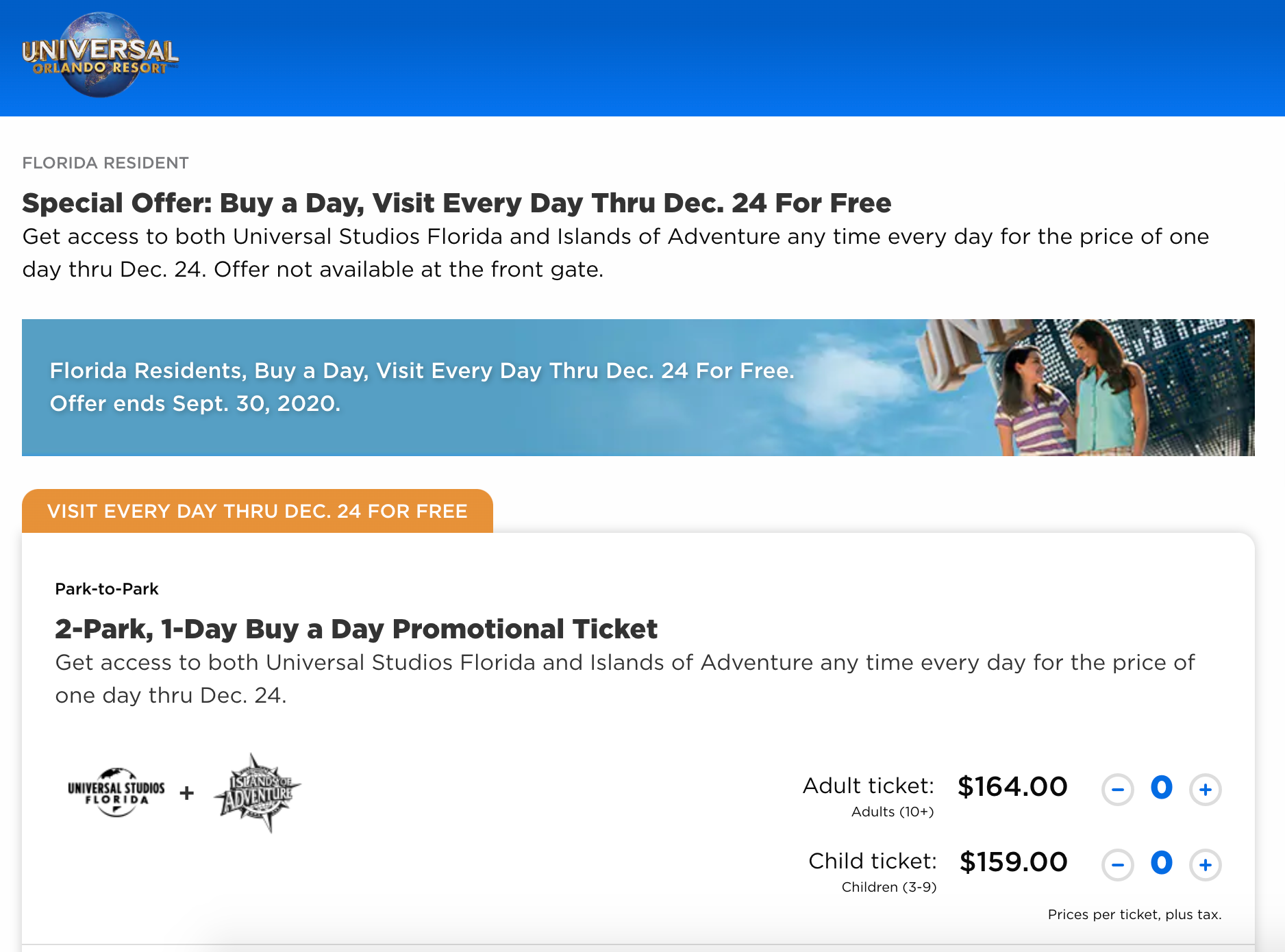 Floridians, rejoice: Right now, when you purchase a single-day two-park ticket to Universal Orlando Resort, you can enter Universal Studios Florida and Islands of Adventure for free every single day through Dec. 24.