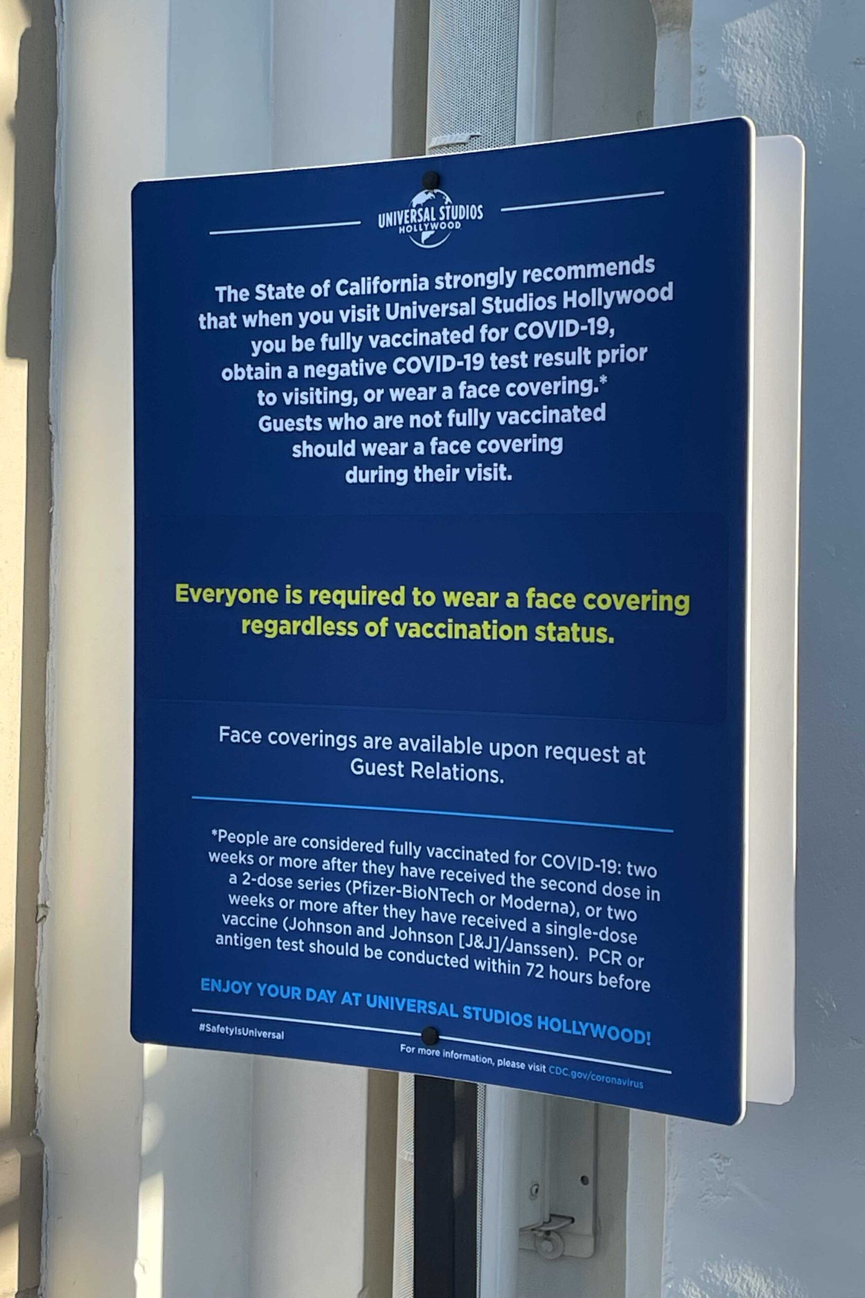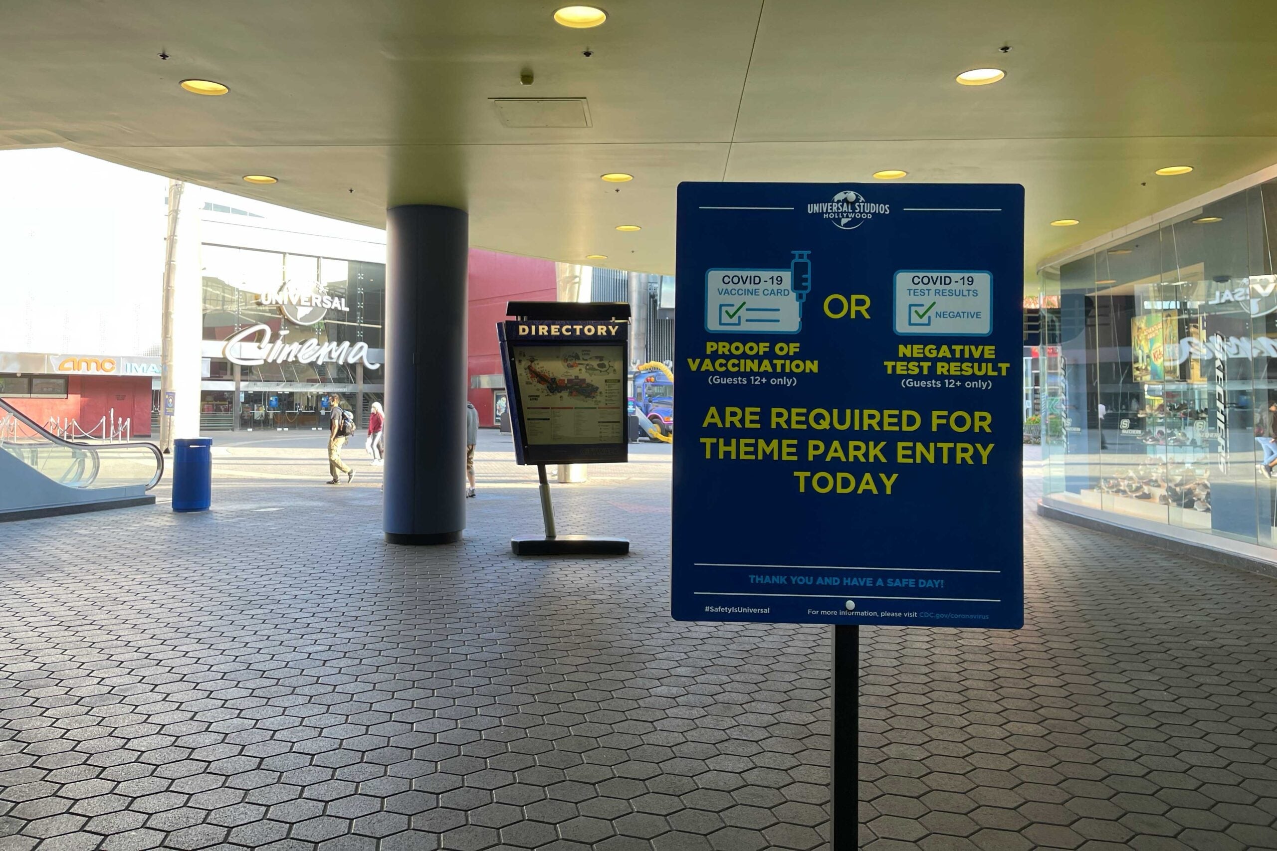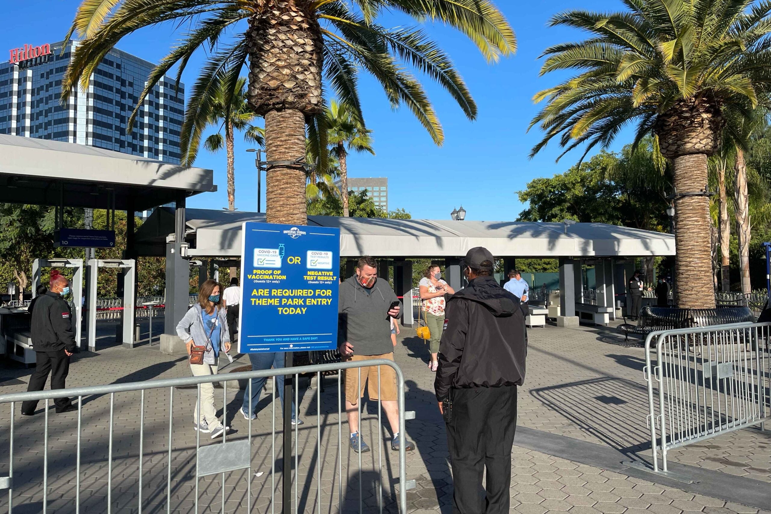 Even before stepping through the gates of Universal Studios, you are immediately confronted with signs everywhere on the new health order to show proof of vaccination.