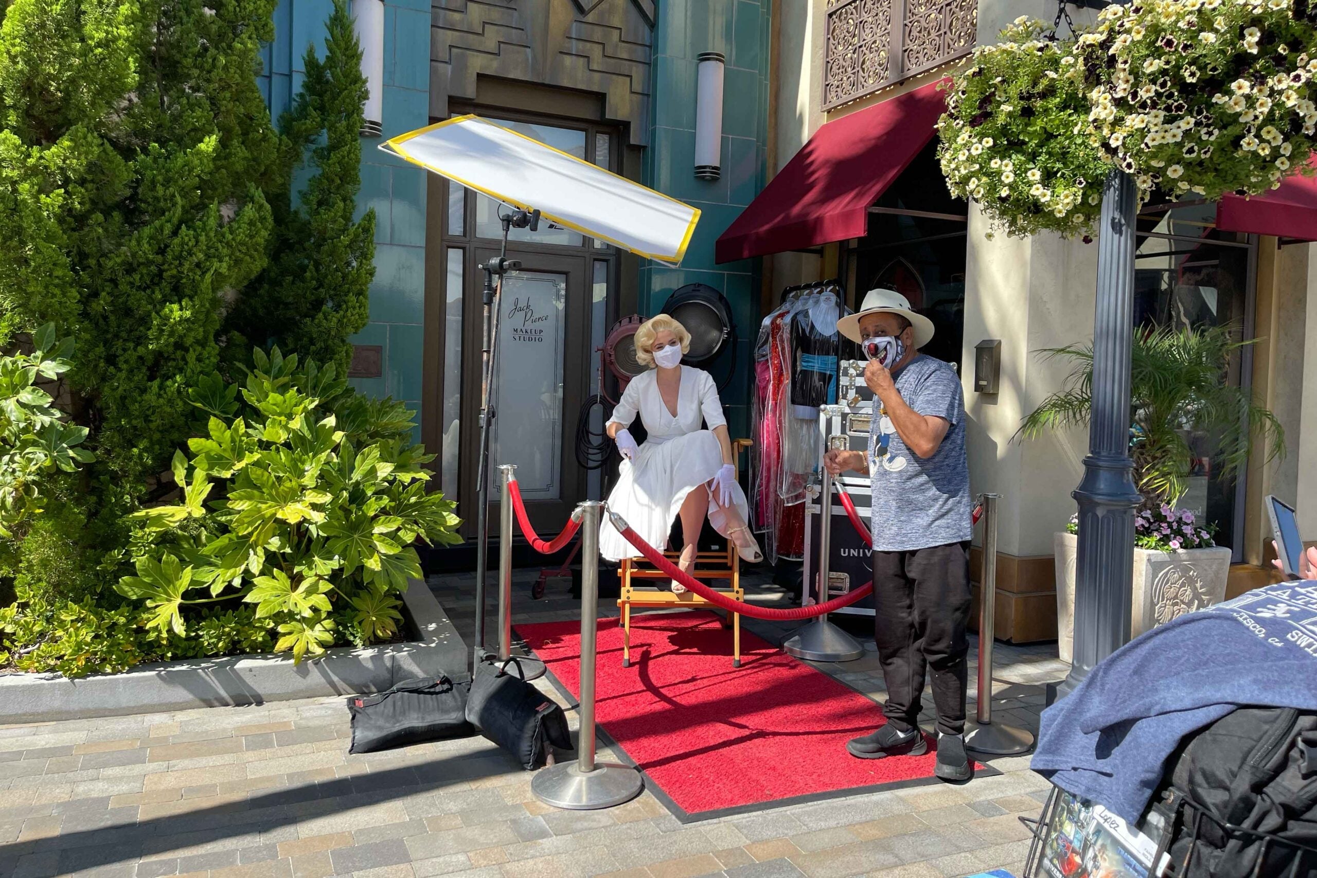 Taking photos with actors playing iconic stars like Marilyn Monroe requires everyone masked up.