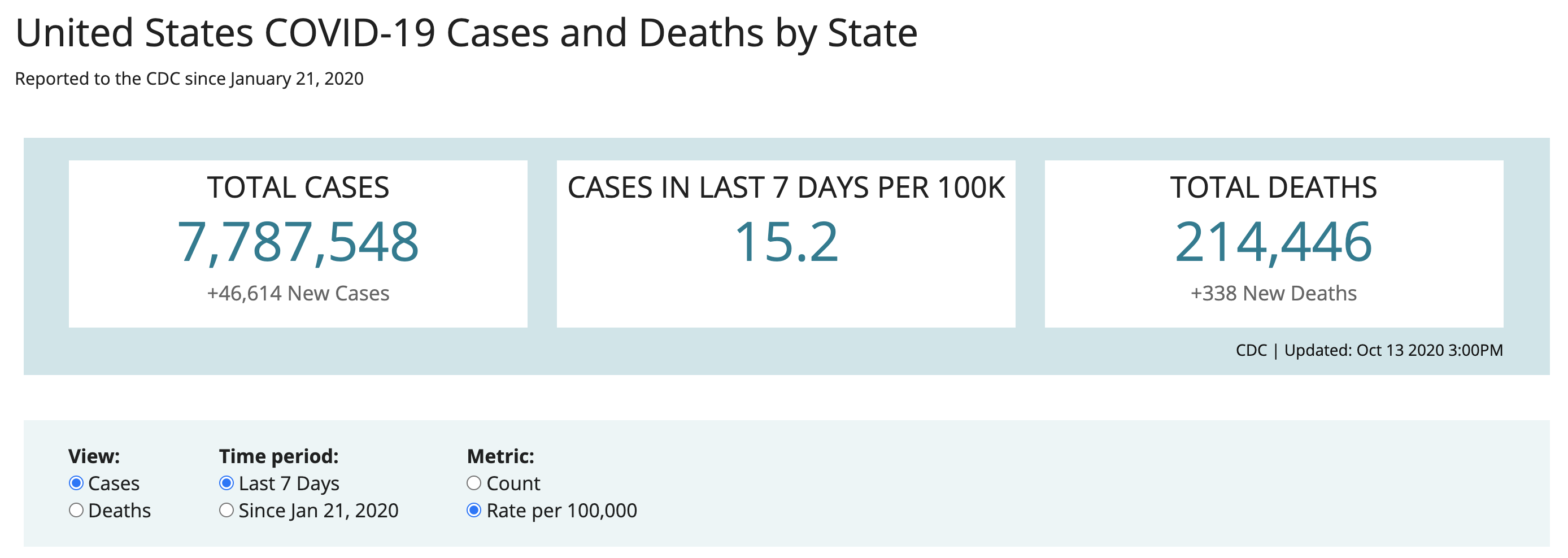 As of Oct. 13, the Centers for Disease Control and Prevention (CDC) has tallied nearly 7.8 million cases and 214,446 U.S. deaths due to COVID-19 — an increase of more than six million cases since the quarantine was levied in late June.