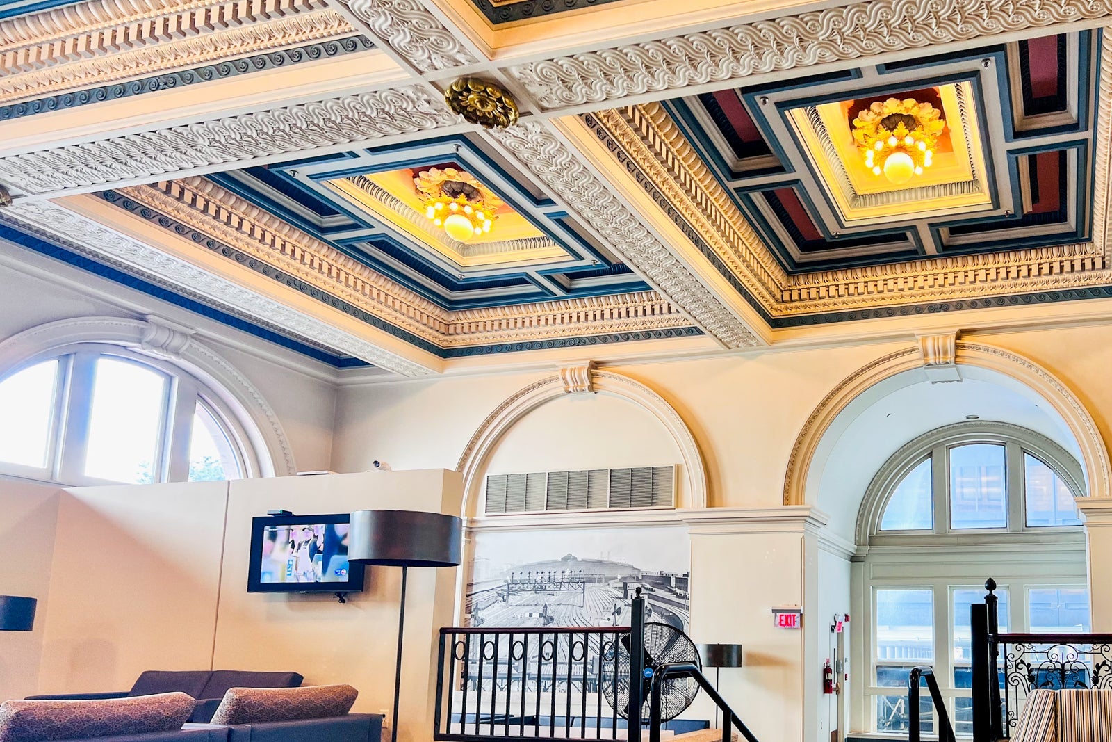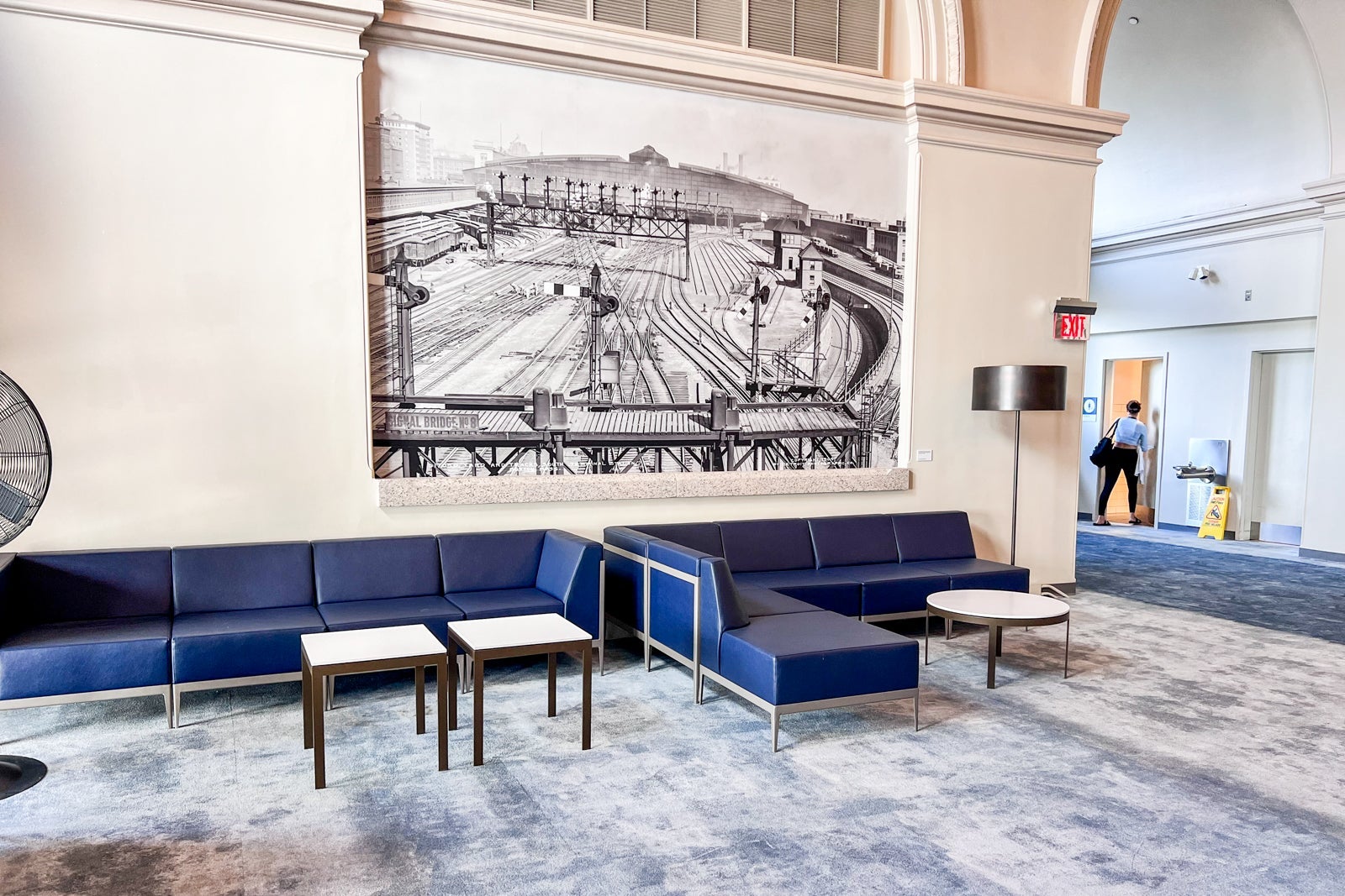 To the left of the seating area I found a set of glass doors that led to a staircase. A sign on the door indicated the station lounge was up the flight of stairs. After pressing the doorbell and speaking with an Amtrak employee, I was buzzed in and proceeded upstairs to the lounge.