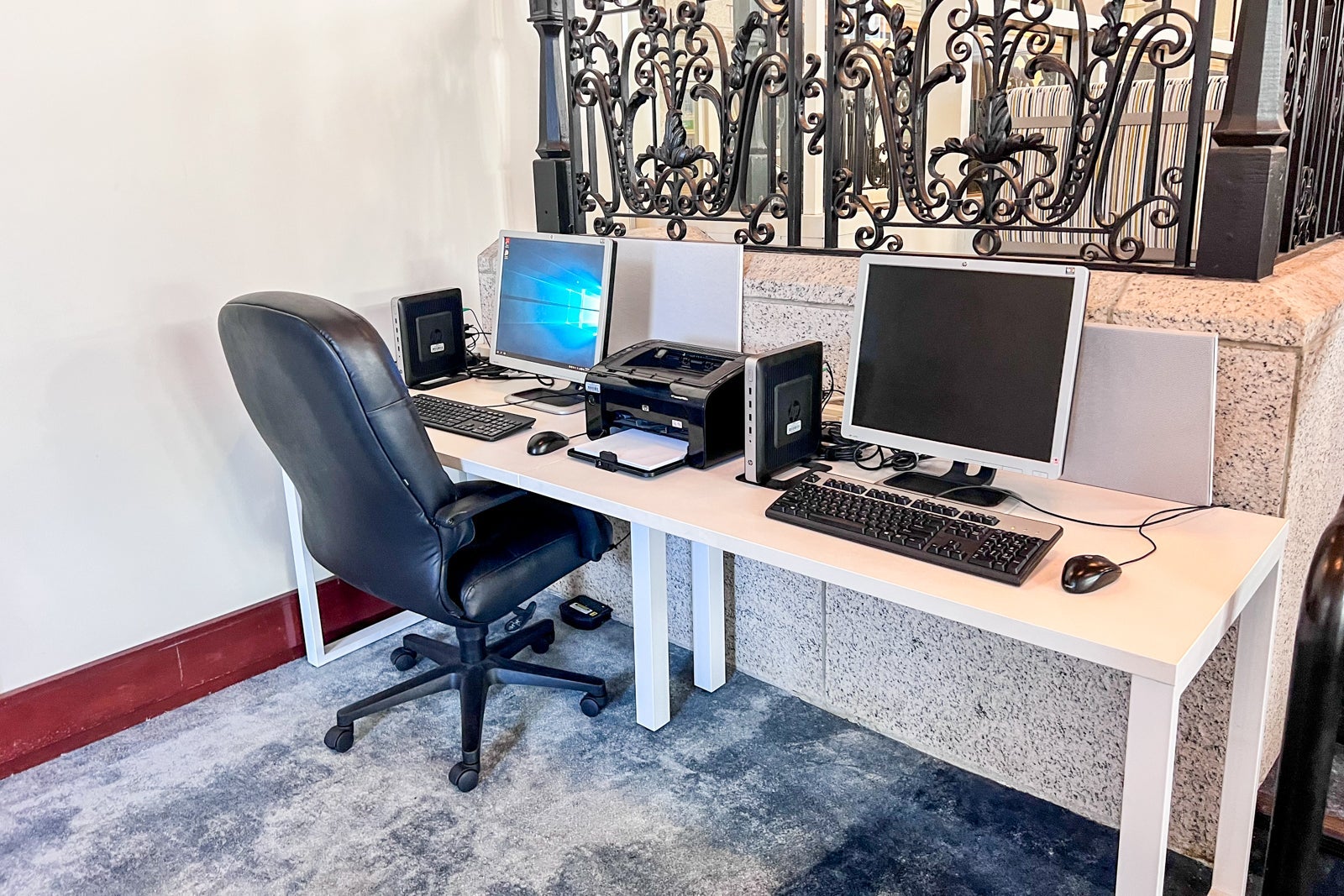 The Wi-Fi in the lounge was speedy and consistent. I didn't run a speed test but was able to work without issue for over an hour including streaming music and downloading files. There's also a small-business area if you need to use a computer or print a document.